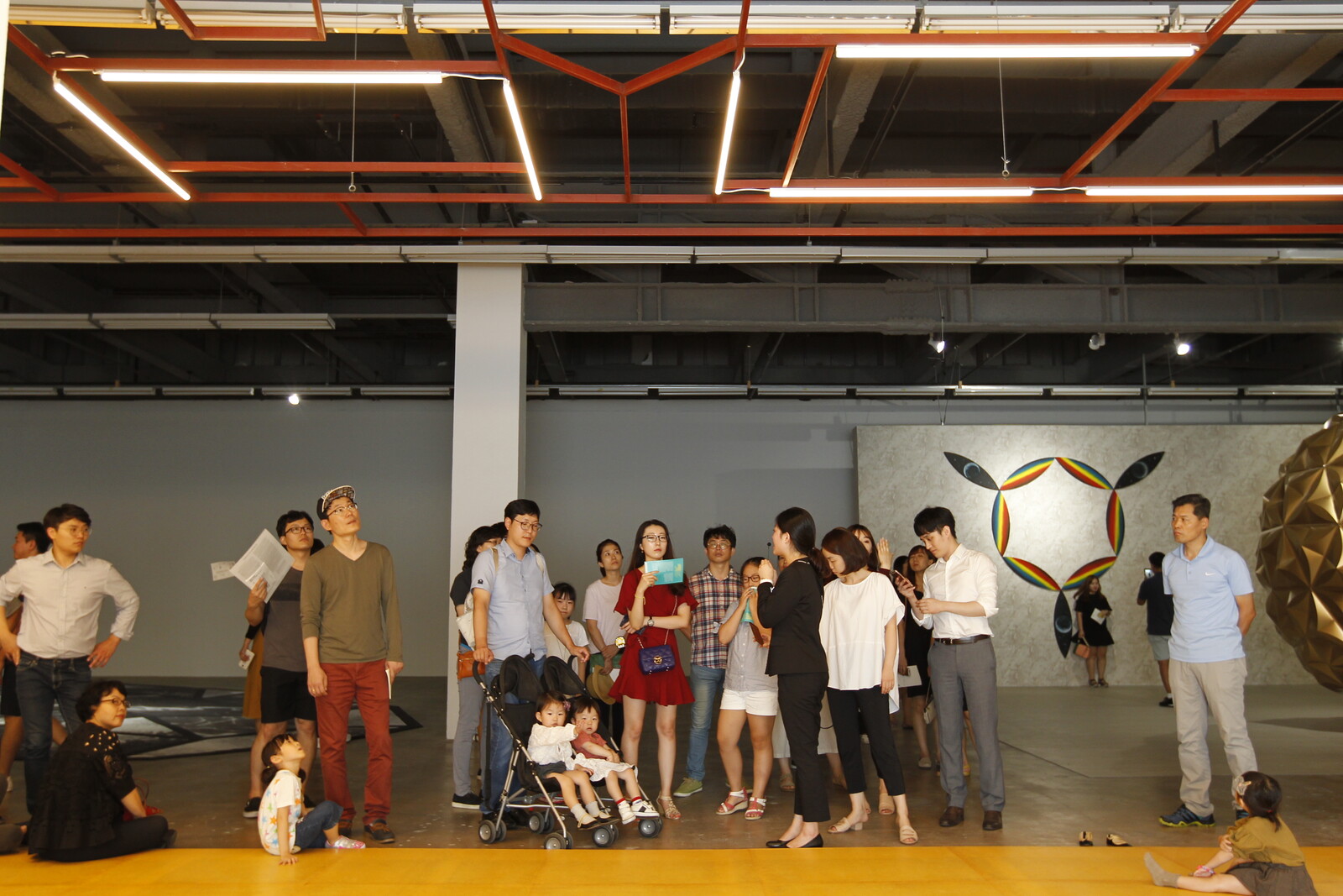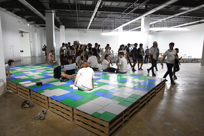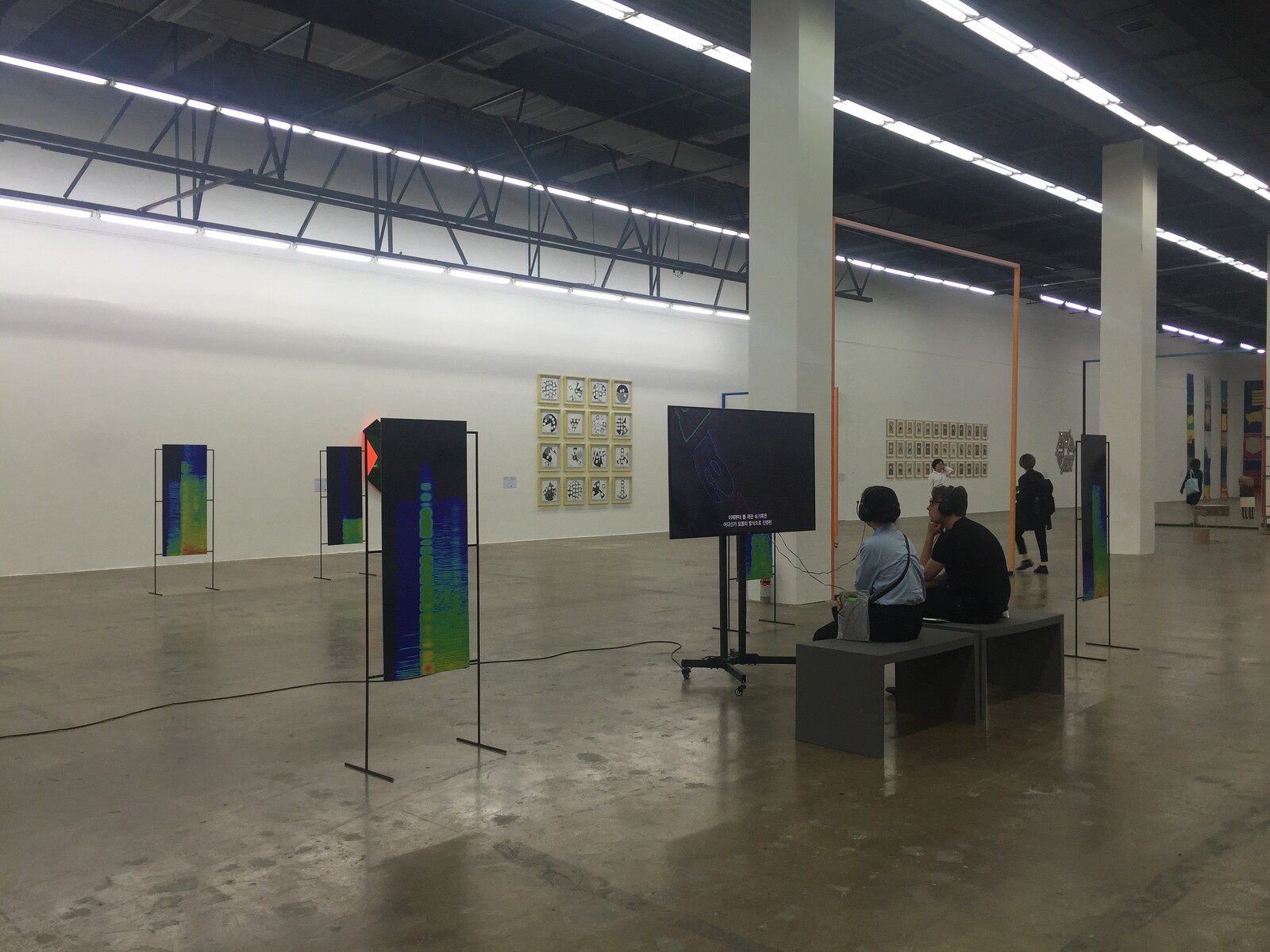 What revealed itself at the Exhibition Hall on September 2 is only one fragment of this temporally and spatially extended biennale, many of whose actors and activators are not immediately visible. These include those who buy books from the reincarnated Nokdu Bookstore, those who use wifi signal generated from Trevor Paglen ’s encrypted router in Gallery 1, Guam-dong residents who have expressed problems with their living conditions, market-goers who have encountered the Monthly Gathering during one of its reading group sessions, and many others who have been and will be either voluntarily involved or accidentally swept in to the biennale. GB11 does not answer the question “what does art do?,” but leaves it purposefully open-ended.