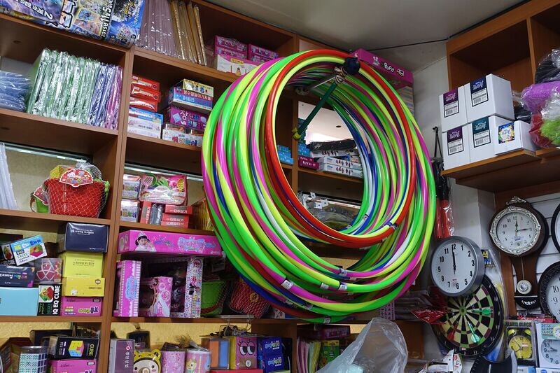 At the center of Gallery 1 is Dora García’s reconstruction of Gwangju’s historic Nokdu Bookstore, said to have fostered the May 18 Democratic Uprising in 1980. Nokdu bookstore for the living and the dead (2016) functions as a real bookstore co-operated by Seoul’s The Book Society. Relevant publications and civilian objects are sold or displayed in and around this semi-open wooden structure. García’s work creates a public space within another one, evoking thoughts about the art institution’s role and potential in society, thus testing “what art does.” There is an enthralling parallel between the new Nokdu Bookstore and Annie Lai Kuen Wan’s little kiosk Everyday A Rainbow (2016) outside the Exhibition Hall, where she arranges commodities collected from six shops in the surrounding neighborhood. Celadon replicas of the original objects are placed back in the original objects’ spots in the shops. Both works embody art’s capacity to make contact and foster “shared concerns”—the mediating role emphasized by Artistic Director Maria Lind.