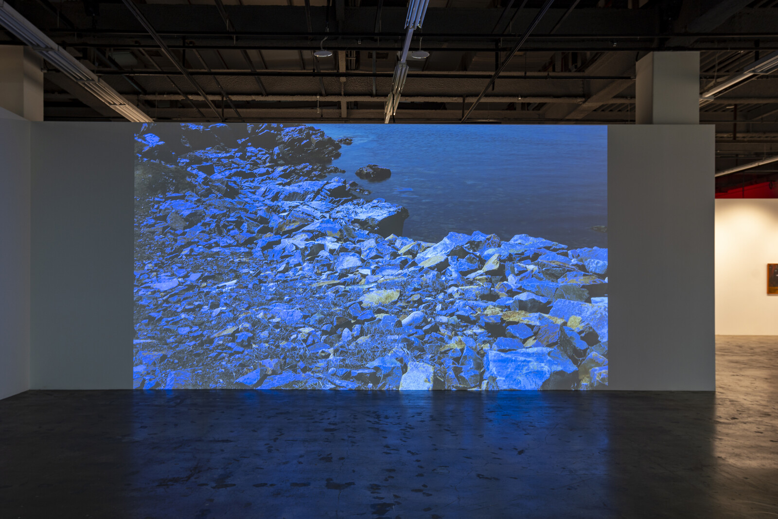 In fairness, they have selected many works capable of rising above their enlistment into every cause going. Beaux Mendes’s hypnotizing paintings, notably Jacob’s Ladder (2023), succeed because they work against easy interpretation, whether perceptual—they hover between abstraction and figuration, never allowing the eye to settle—or intellectual. Presented on a freestanding LED wall in front of metal bleachers, Lucy Raven’s Demolition of a Wall (Album 2) (2022) uses military surveillance technology to represent the shockwaves at an explosives range in New Mexico, creating a work so formally uncompromising as to resist incorporation into any overarching “visual symphony.” Similarly, Yuyan Wang’s Green Grey Black Brown (2024) features a montage of images of floods and landslides that—set to a glacial version of Yes’s “Owner of a Lonely Heart” (1983)—work to undermine the conceptual constructs for which metaphors like “feedback effect” and “resonance” are molds.