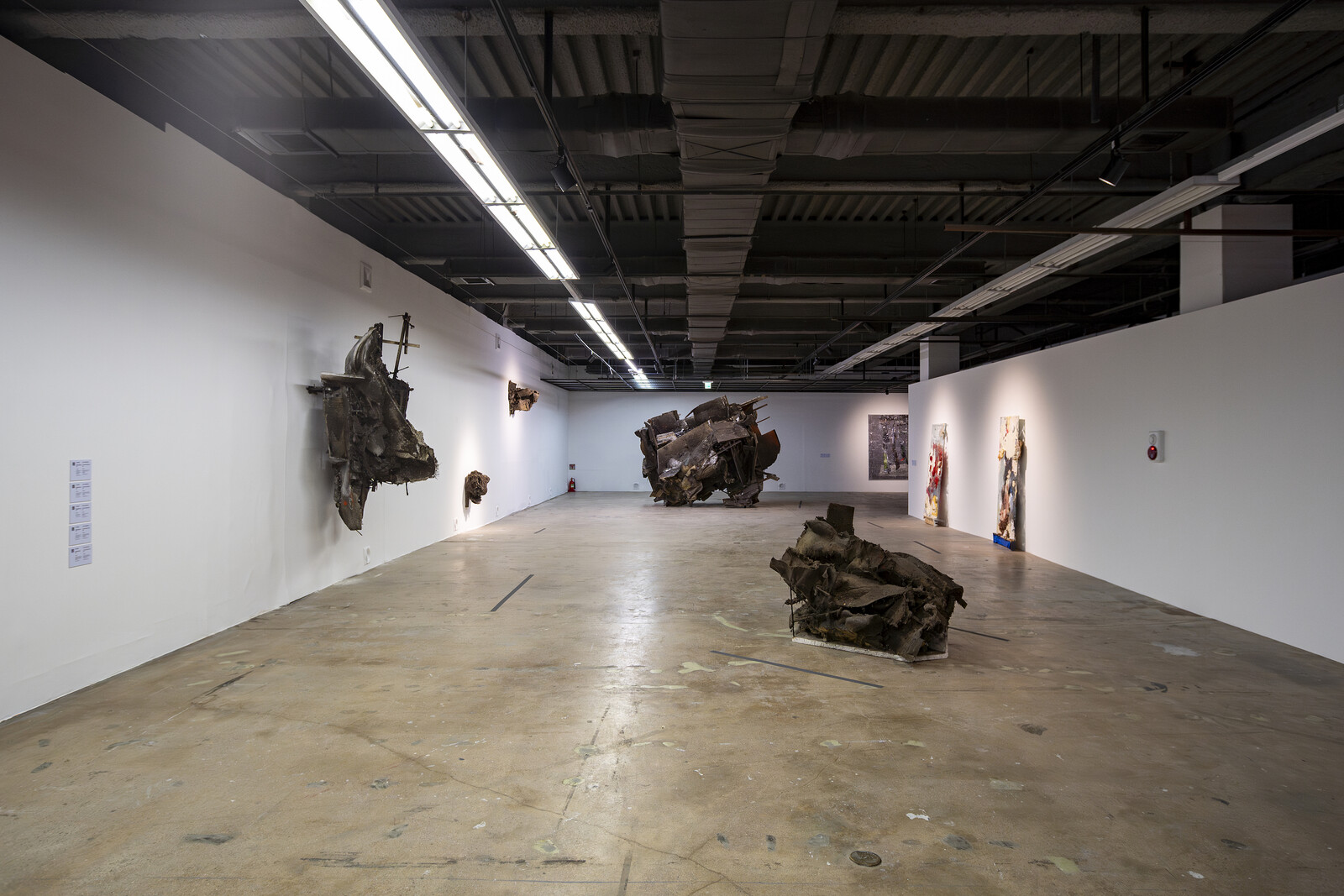 The central show at Gwangju Biennale Exhibition Hall is spread across five floors that the visitor ascends from ground level.2 The atmosphere in its lower reaches is apocalyptic, exhausted, and dystopian, an aesthetic of broken wires and fragmentary ruins gathered under a dismal light and typified by an impressive series of monumental sculptures by Peter Buggenhout resembling John Chamberlain’s junked cars. Yet where the American artist conjured both the joy of the open road and the horror of the high-speed crash, Buggenhout’s crumpled architectures set the tone for the opening’s relatively narrow—and notably dour—emotional register.