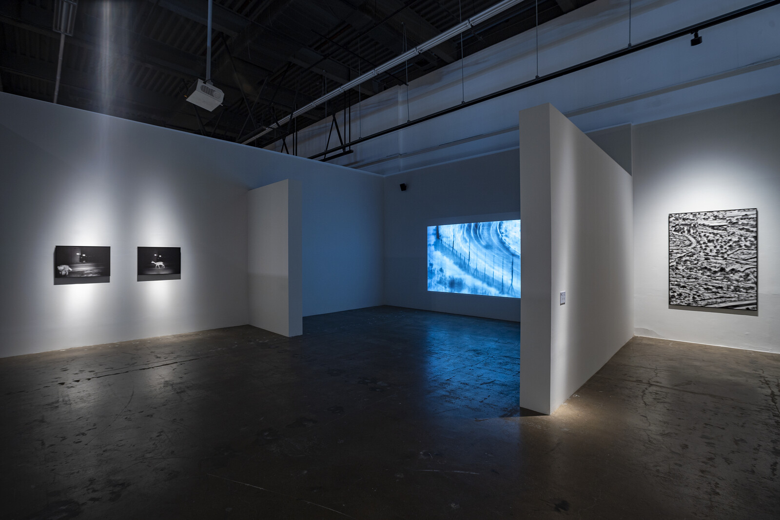 The second floor is the strongest section at this central site. Netta Laufer’s compelling 25ft (2016) comprises a video installation and still photographs repurposing surveillance footage from the border wall with Palestine, picking out the wild animals whose presence accentuates the inherently unnatural character of such divisions. Yet the sound bleed from the video upsets the delicate balance between Andrius Arutiunian’s Below (2024) and Sung Tieu’s System’s Void (2024) in an intelligently twinned installation on the far side of a thin partition. The disruption of borders is clearly intended to serve a curatorial point—Bourriaud has enlisted “echoes, overlaps and chords” between elements in his “operatic” design for the exhibition, adjusting the volume of sound and video works to serve an overarching “soundscape”—but this gesture is here to the disservice of the work.4