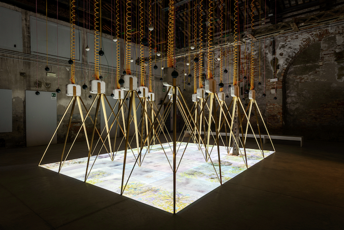 In the Arsenale and the Giardini’s Central Pavilion the poorly-lit, clunky curatorial text hymning “good works” hangs on signs next to projects which, without it—even with it—can be vague and incoherent. A whole room in the Corderie, for instance, is taken up with an array of white spotlight beams. The accompanying text reads: “The work of Transsolar, a contribution to sustainability… Cutting edge engineering at the service of common sense.” The non-explanation continues: “Transsolar takes a step back in the search for local strategies that use available resources more efficiently. However, this way of thinking is not romantic or ‘antiprogress.’ It is about putting the most sophisticated engineering to work at the behest of common sense.” At the end of the text I’m still in the dark. Transsolar describes itself as a “climate engineering firm,” involved in heating, ventilation, and air conditioning. It’s defensive, but hopefully not involved in the defense industries. I long for an acerbic quotation about aircon from Rem Koolhaas’s polemic Junkspace (2001), but none is forthcoming.