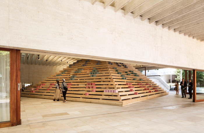 The most successful of the national pavilions in the Giardini was Germany’s, whose exhibition “Making Heimat. Germany, Arrival Country,” curated by the Deutsches Architekturmuseum, looked pragmatically into ways the nation could improve its cities as destinations for immigrants and refugees. All too often, though, the national pavilions were reduced to showing architectural models of “holy urbanism,” or trying to present dry data in colorful and sexy ways. For instance “In Therapy,” the exhibition at the Nordic pavilion, arranged tear-sheets on a giant wooden ziggurat—a secular cathedral steps—not unlike the installations of Rita McBride.