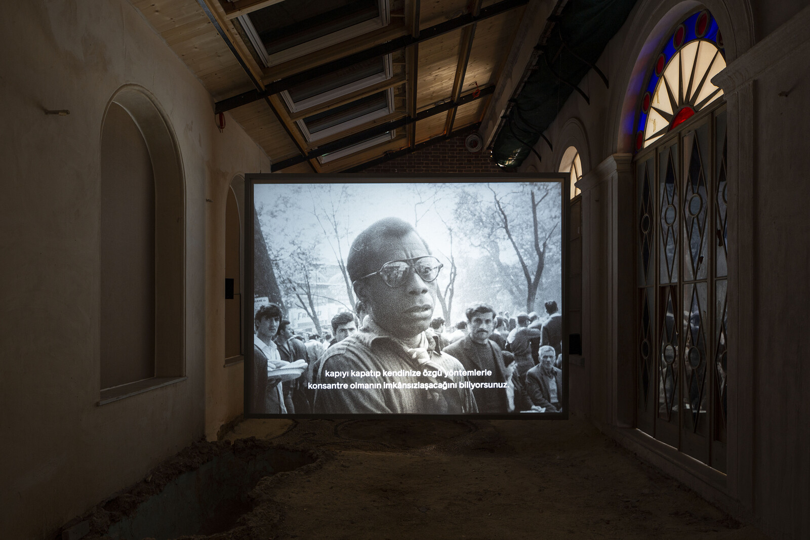 During the Ottoman Empire, Büyükada Island in the Sea of Marmara was a Greek Orthodox summer resort. Although it retains an air of imperial grandeur, today it is mostly a tourist destination. The biennial’s presence here assumes the form of a series of journeys in which artists encourage viewers to make imaginative leaps through time and space. Two works stand out. Glenn Ligon’s installation From Another Place (2019) combines two neon pieces with Sedat Pakay’s documentary film on James Baldwin’s stay in Istanbul in the 1960s—translated into Turkish for the first time—alongside other video pieces in which Ligon revisits Baldwin’s steps in the city. Armin Linke’s detailed project Prospecting Ocean (2018), meanwhile, documents the complete entanglement of scientific, economic, political, and technological agendas in the exploitation of the deep sea.