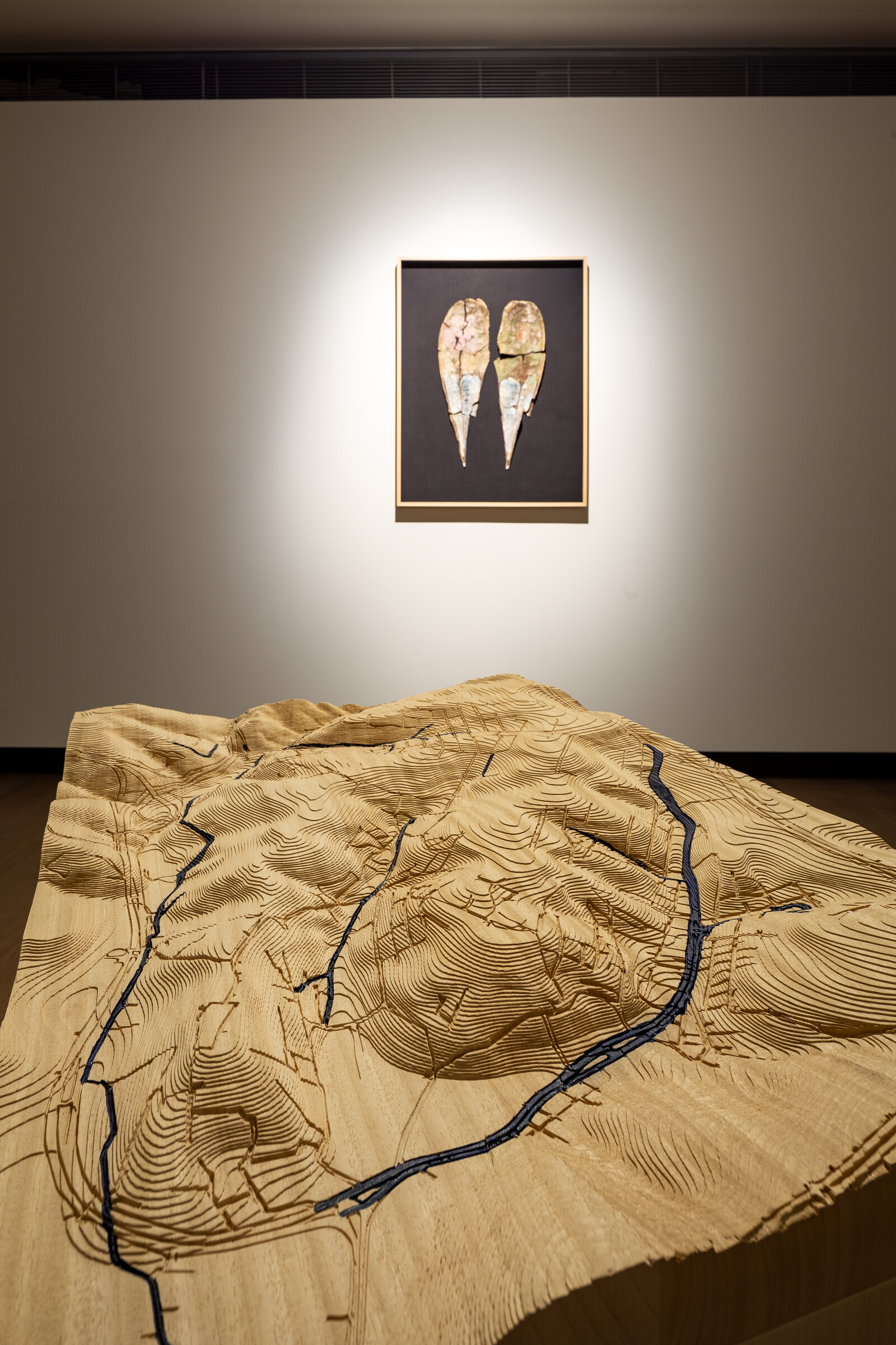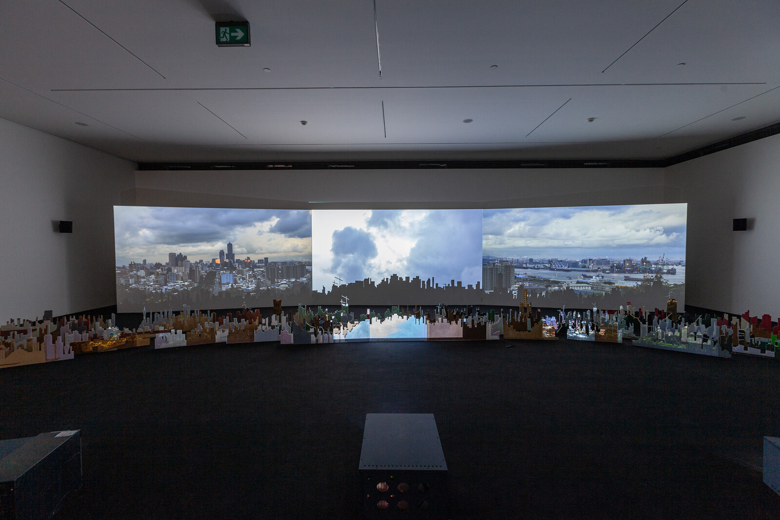 Several of these environments are doomed. David Douard’s abject sculpture Gold and smile (2019), for example, alludes to the formlessness of the modern subject with its jumble of magnets, aluminum, metal chains, plastic, and ceramics. En Man Chang’s video installation Ungrounding Land – Ljavek Trilogy (2018) focuses on unseen human labor and the forced displacement of the proletariat subjected to urban planning decisions of the Paiwan Ljavek community in the port city of Kaohsiung in Taiwan.