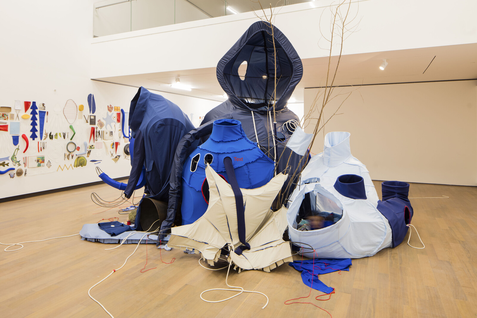 Other environments are more hopeful. Among them is Extrakorporal (2019), a sculptural installation by the duo Pakui Hardware (Neringa Černiauskaitė and Ugnius Gelguda), which considers body augmentation in the age of synthetic biology and regenerative medicine. Eva Kot’atková’s installation Machine for Restoring Empathy (2019), made from pieces of fabric, offers a protected environment for people, animals, plants, and objects that are wounded or incomplete.