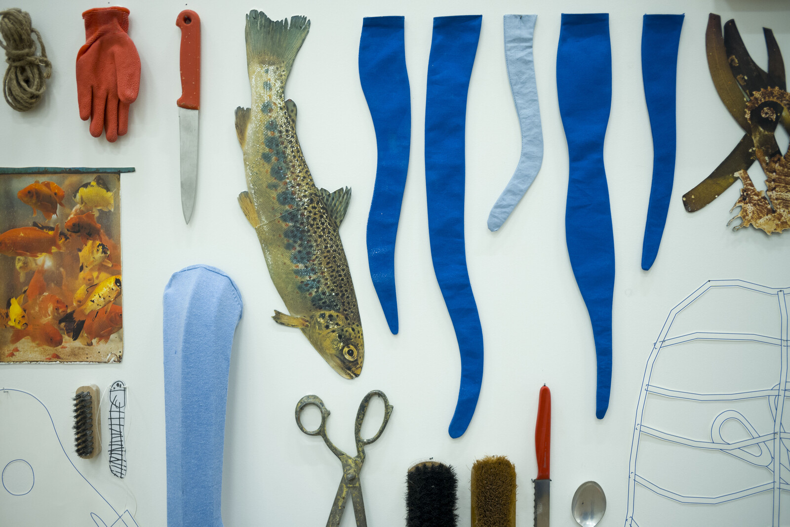 Many of the works on display, whether they present images of a declining environment or dreams of promising futures, are composed of waste, but they are often delicate and precisely deployed. Elmas Deniz’s consideration of the destructive effect of urbanization on Istanbul’s water supplies (History of a particular nameless creek [Pinna Nobilis], 2019) draws attention the beauty of the lost ecosystem of the ancient site of Gryneion, close to where she grew up. Deniz’s work is among those in the exhibition that use beauty to reclaim and recycle the surfeit and waste produced by consumer societies.