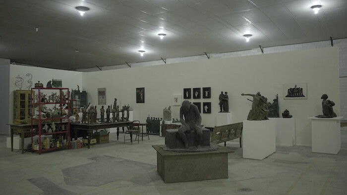 Art-historical responsibility was addressed self-consciously by separated sections in the main venue, devoted to four Indonesian artists of a previous generation (not all of them anti-Suharto activists): the sound artist I Wayan Sadra, the sculptor Hendrawan Riyanto, the painter and activist Semsar Siahaan, and sculptor and activist Dolorosa Sinaga. These presentations set the key in which many of the other works would ring out: art’s potential to disrupt received narratives. Sinaga’s small-scale sculptures of the female form, which she has made over the past four decades, were presented within a mocked-up studio site in the main venue. She also showed a fleet of human-scale statues of Sukarno, still largely a national hero, in the popular, colonialist-era Fatahillah Square, whose Neo-classicist buildings served as the biennial’s second venue. While the first president of Indonesia and leader of its independence movement from the Netherlands is usually shown as placid and reserved, video footage of him attests to an expressive man, with signature dynamic gesticulations. Sinaga used these gestures for her statues: a return of Sukarno, his mission perhaps not accomplished, into a square that still hosts a Café Batavia—the old Dutch name for Indonesia.