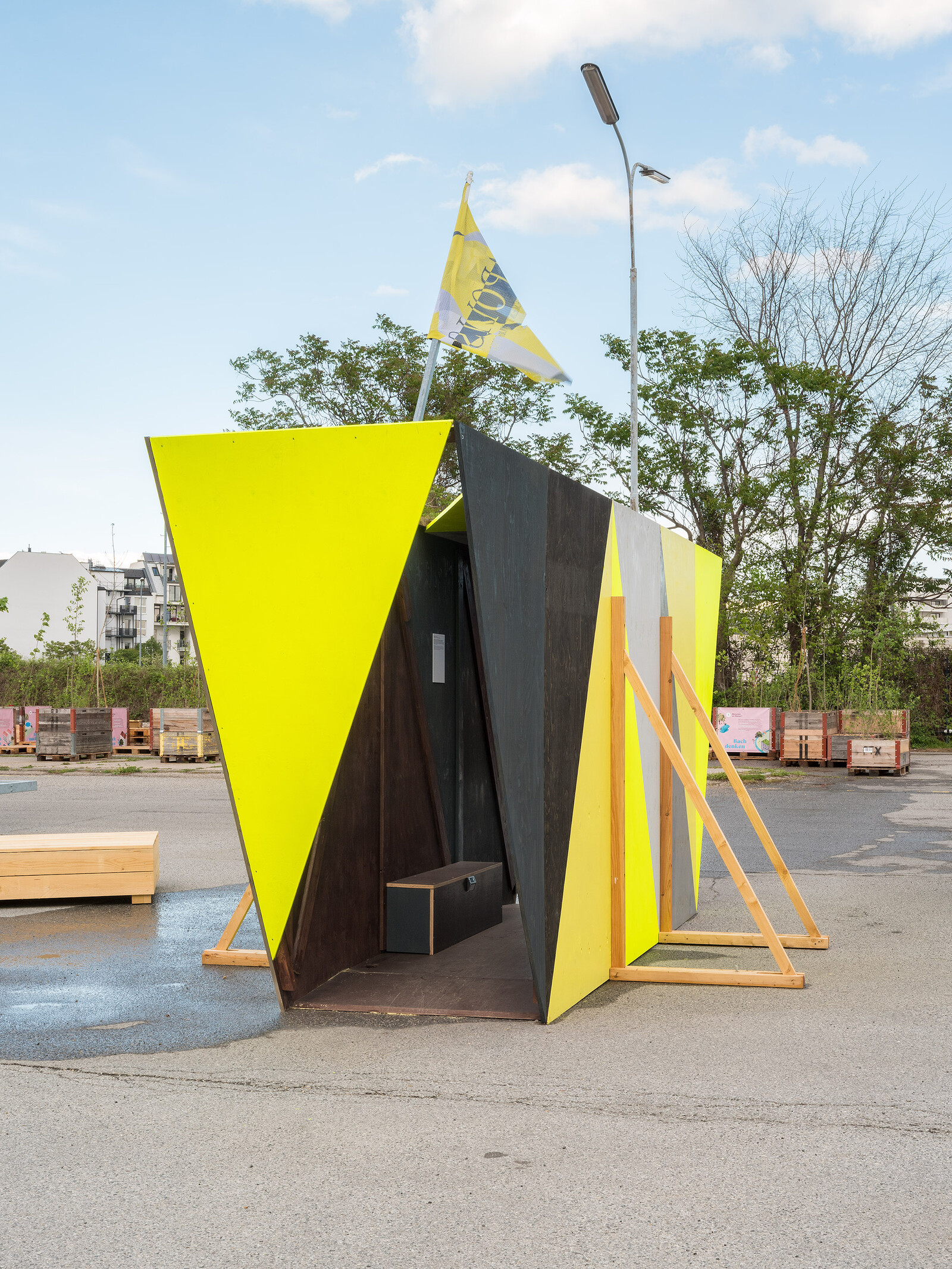To quote the organizers, the overarching idea of the biennial is to spur “the paradigm shift toward a livable and sustainable future on our planet. The key tools to achieve this objective are, without doubt, participation, collaboration, and awareness.”1 To this end, the programme at the semi-derelict Festivalareal includes an Atelier Luma and Vienna Business Agency project, where architecture students research material reuse, and a showcase for “Design with a Purpose,” objects that try to alter the dynamics of product lifecycles. The same location offers childcare, no-consumption spaces where you can spend time without any pressure to buy anything, and compost toilets; in the yard outside, tarmac has been torn up to create beds in which slender trees and herbs seem to be flourishing—they can enjoy a few years before the site’s eventual redevelopment.