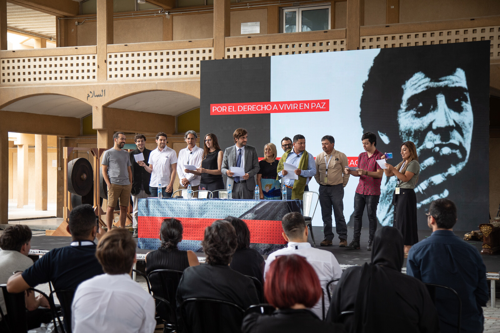Lahoud’s project, “The Rights of Future Generations,” rests on the premise that, as Lahoud put it in an introduction to one of the presentations, fighting for the environment is not a new trend out of London and New York, but something which “black and brown people have been doing for the last century.” Throughout the triennial, representatives from a variety of indigenous communities—people coming from regions as diverse as the Chilean mountains, the Great Sandy Desert of Australia, and stretches of Upper Egypt—and researchers from threatened or developing communities in places such as Gaza, Bangladesh, Senegal, and Iran presented strategies of adapting to climate change and ongoing colonialism in talks, performances, and exhibitions. Importantly, the triennial aims for the sweet spot between research and activism, with the goal of affecting change on the ground, rather than simply presenting a display of potential change. For example, in a lecture accompanying their project The Atacama Lines (2019), the leader of Chile’s Atacama tribe used the Sharjah platform to declare his lands to be sovereign territory. The proclamation exemplifies their use of cultural capital: the Atacama people have secured UNESCO protection for the immense geoglyphs they have built in the mountains. They have leveraged this UNESCO status, and the tourism potential that accompanies it, to safeguard their lands, shielding them from resource extraction that was affecting their water sources; their Sharjah invitation builds further international support for their legal claim. After the presentation, the atmosphere was euphoric: the audience gave a standing ovation, the Atacama team performed a song.