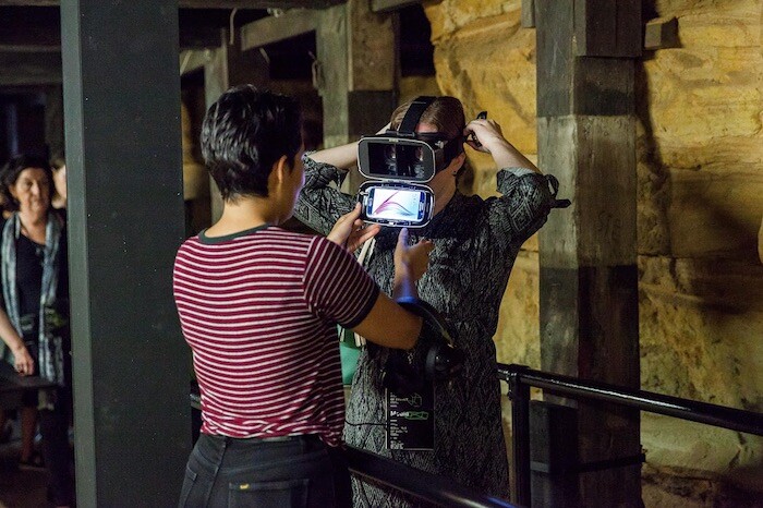 At the Embassy of Spirits, at the Art Gallery of New South Wales, other works enact pre-industrial concepts. Taro Shinoda’s beautiful chamber, Abstraction of Confusion (2016), offers a meditative space in which to be guided by “the voice of Ki” from Japanese tradition. Due to the sacred nature of the local knowledge Joyce Campbell’s anachronistic photographic process pictures, her collaboration with Richard Niania (Ngai Kohatu), Taniwha Whakaheke / Taniwha Descending (2016), was opened according to Maori tikanga or protocol in a public pōwhiri or welcome, which in turn required a formal Welcome to Country from a Gadigal Elder.