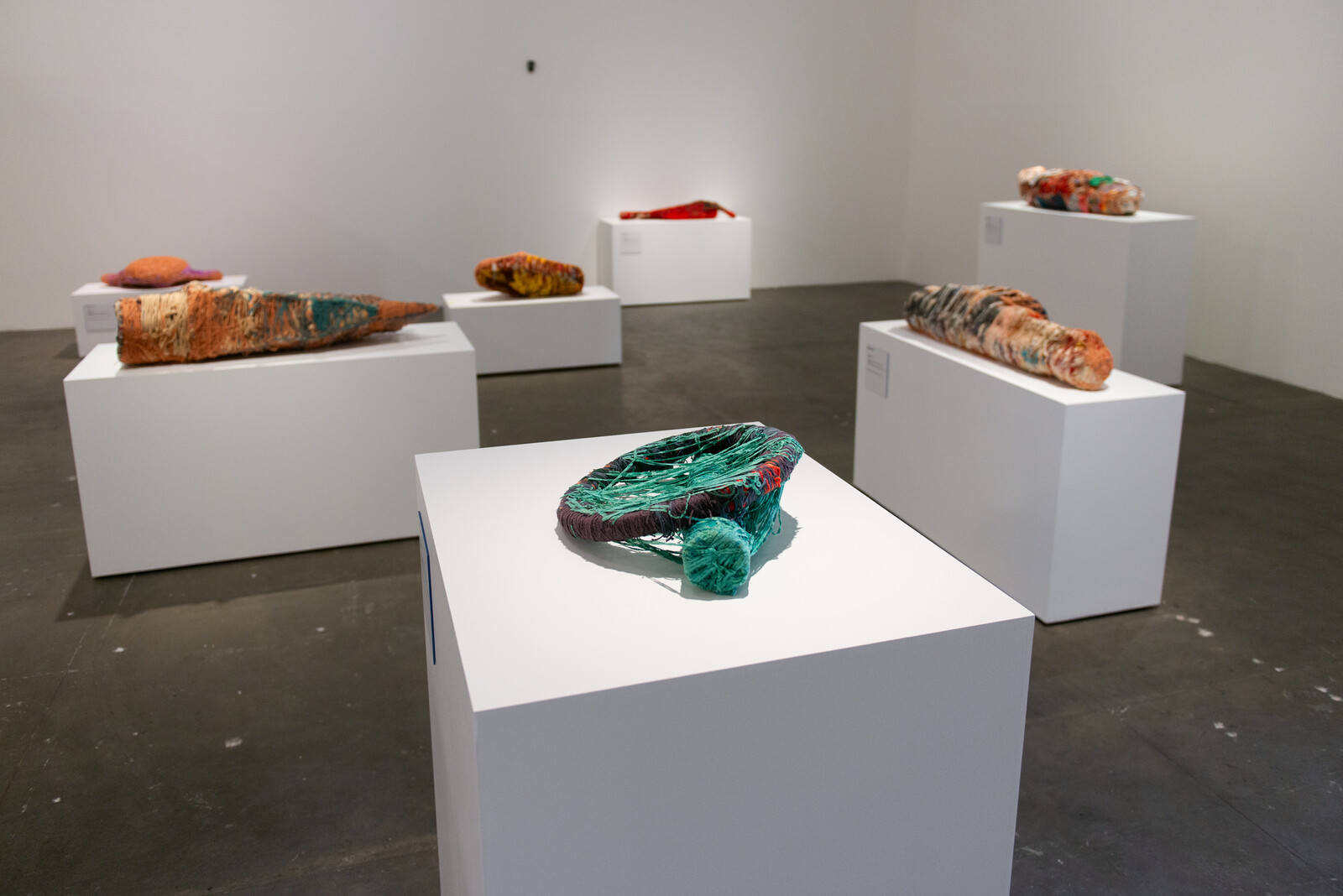 To be clear, surely the curators know what their show is about. They make textual allusions in more lyrical prose and have assembled a kaleidoscope of artists working in postcolonial contexts around the world. But it’s a choice to elide any mention of its binding principle. It’s another choice not to disclose certain biographical information, like the fact that Judith Scott—who posthumously contributes a room of haunting sculptures of bunched fabrics wrapped in webs of yarn and displayed on plinths, many proportioned like miniature bodies—lived as a deaf woman with Down syndrome. This is a show mainly comprised of artists who belong to marginalized groups, and abstains from the vulgarity of indexing people along these lines except when contextually necessary. Instead the work speaks for itself, and on an individual basis this is admirable. Most arrows in the exhibition’s quiver are piercing, but the target towards which they are directed is not always clear.