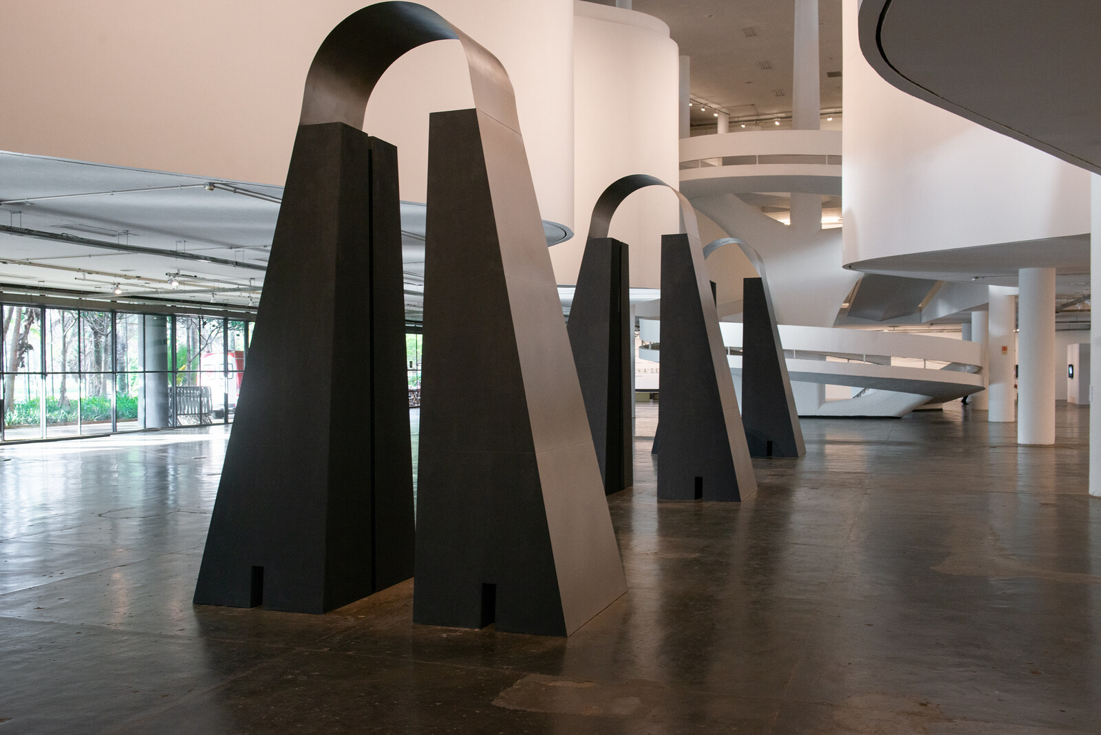Dyson’s sculpture is situated at the architectural heart of the Bienal, at the base of Niemeyer’s atrium, enveloped by ramps that ribbon up to the exhibition’s other levels. This siting feels important, but, judging by how people behave around it, how it’s situated does not communicate its gravity. Projects such as Shahak Shapira’s “Yolocaust”—which juxtaposes pictures taken in front of Berlin’s Memorial to the Murdered Jews of Europe with images from concentration camps—have drawn attention to the appetite for selfies in front of grim, minimalist stelae.