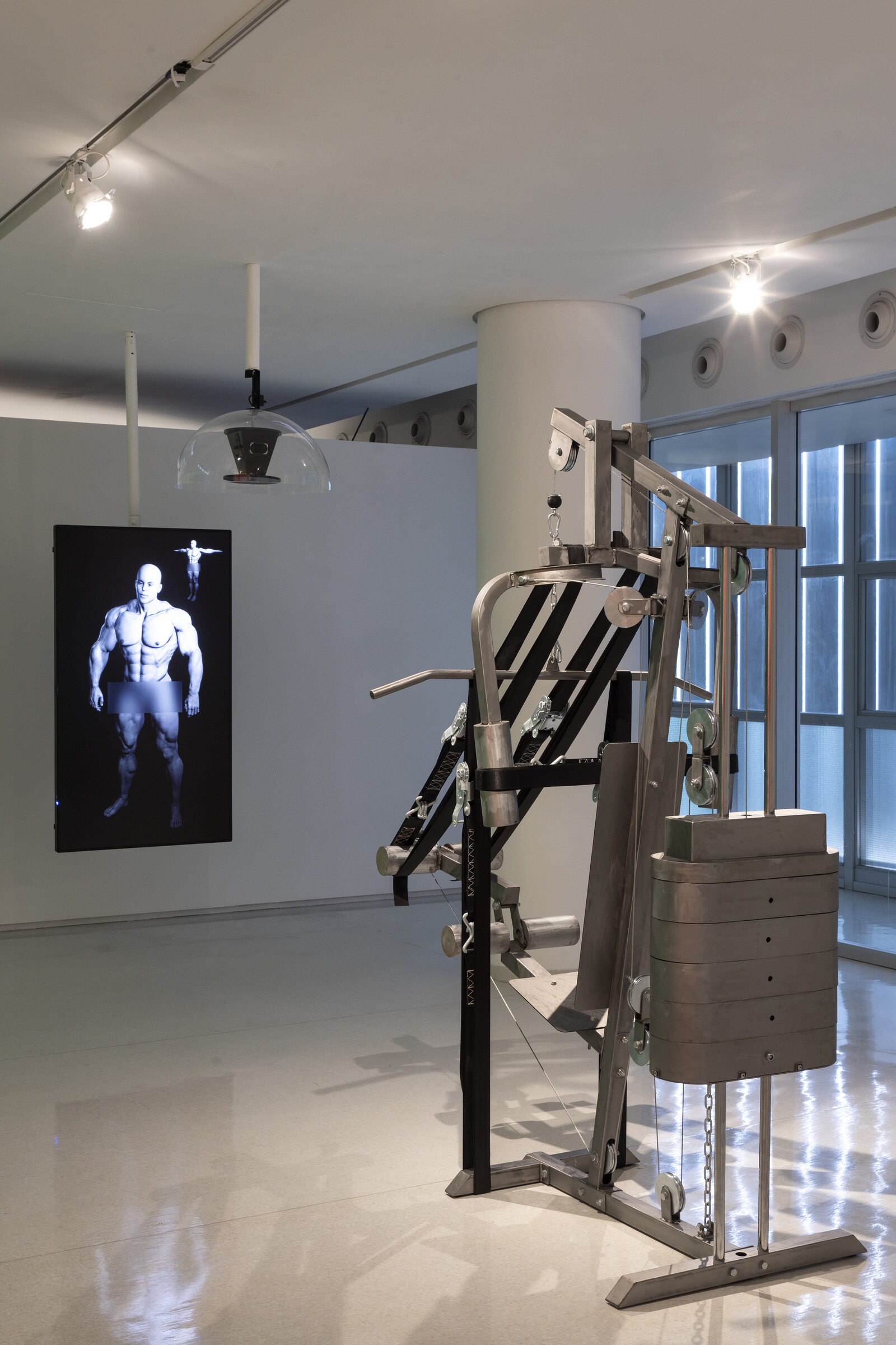 “Mil Graus” admits other artistic forms linked to the digital and the concerns of the metropolitan citizen of the twenty-first century. Marcus Deusdedit’s video installation Untitled (2024), from the series “Performance,” shows a CGI bodybuilder taking his obsession with physical exercise to the extreme, while Melissa de Oliveira’s photographs (Aquecimento and Sucessagem, 2024) seize the vitality and risk of street cultures on the outskirts of Rio de Janeiro, portraying young people proudly pulling motorcycle stunts in acts that are as political as they are cultural.