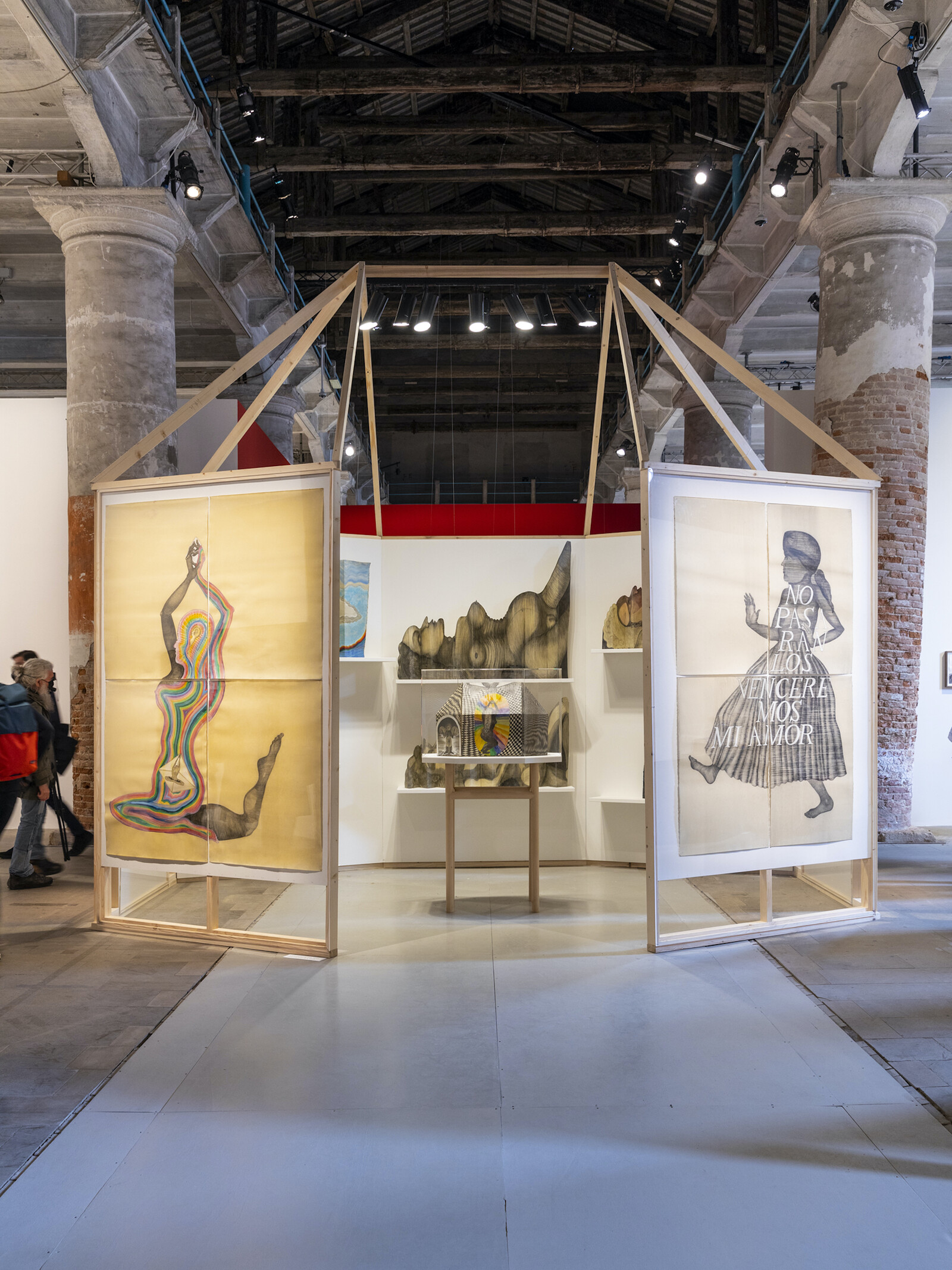 Djamila Ribeiro has written about understanding “the gender category” from non-Eurocentric sources, taking, for example, the female orixás deities in African-origin religions including Candomblé and Umbanda. This is feminist discourse by other “geographies of reason,” with women of care, women of cult, mythical female ancestors, and African diaspora witches who are, she writes, “the antithesis of any denial of behavioral, political, ethical transcendence that women may represent.” Ribeiro notes, precisely: “From them it is possible to think of a practice that transforms the colonial relations present today.”1 Her words surfaced in my mind as soon as I entered the opening rotunda of Cecilia Alemani’s exhibition in the Arsenale, that colonial-era set piece of empire and fleet-building, rippling out across oceans and seas and bodies and centuries. Here, Simone Leigh’s sixteen-foot-tall bronze bust, Brick House (2019), centered and raised the room, all colossal sentinel sans eyes. Her architectonic skirt both shelter and body, her titular Commodores lyric at once celebration and song, her origins in the West African Batammaliba and Mousgoum cultures and aesthetic signatures of building. All-seeing by unseeing, I thought, then looked around.
