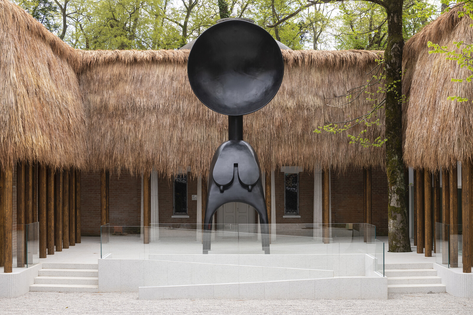 With its façade transformed by hanging thatch into an homage to vernacular African architecture, Simone Leigh’s attention-grabbing US Pavilion is pointedly titled “Sovereignty.” As a counterpoint to Cecilia Alemani’s surrealist-infused international exhibition, which foregrounds fluidity and category slipping, this assertion of the right to self-determination is striking. The sheer physical presence and self-possession of sculptures indebted to African traditions—precisely and sparsely arranged through the pavilion—communicate an identity that is confident, coherent, and secure in its boundaries. Yet the title also draws attention to the fact that this celebration of African heritage is delivered by a sovereign American citizen under the auspices of the US Pavilion, offering another reminder of who is enabled to represent what in Venice.