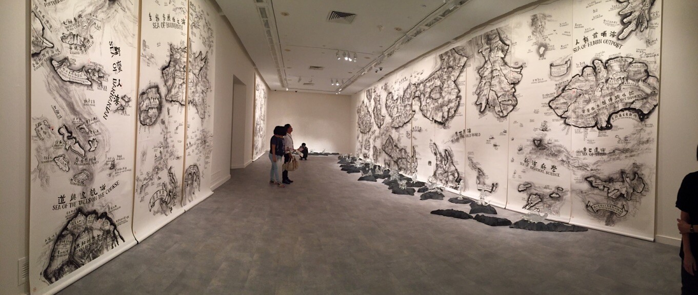 The leeway afforded by this blanket invitation manifests across the biennale through a homogeneity of visual textures in the exhibited works and the literal interpretation of its title. Works such as Harumi Yukutake’s Paracosmos (2016), an elegiac, site-specific installation of hand-cut mirrors presented around the central stairway of the Singapore Art Museum; Map Office’s Desert Islands (2009, 2016), an installation of 100 mirrors engraved with individual coordinates of islands, questioning the peripheries of geographical consciousness; and Melati Suryodarmo’s Behind the Light (2016), a durational performance and installation looking at the means of perception through Asian theatrical traditions with the use of a two-way mirror that fades away, at certain points, to reveal a room occupied by a performer, all located within the Singapore Art Museum’s main building, unfortunately can be reduced upon one’s first impression to the common and literal use of materials such as mirrors.