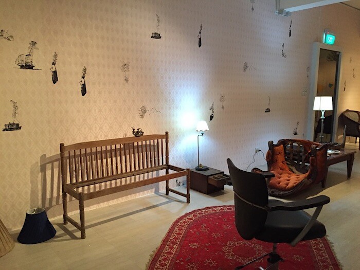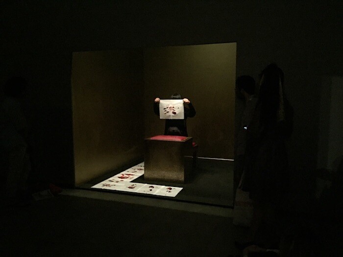 In the same building, Jack Tan’s Hearings (2016) explores how memories are constructed and interpreted. Here, the artist records the experiences of litigants at the State and Family Courts of Singapore in graphic scores, which are then interpreted and performed by a local choir. It risks being overlooked, given the small nook it occupies behind Soap Blocked (2016), an installation by Htein Lin, but the intimacy of the simple setup of dimmed lighting, music stands, and scores functions as a respite from the visual and offers visitors a contemplative moment to consider how the auditory sense takes hold.