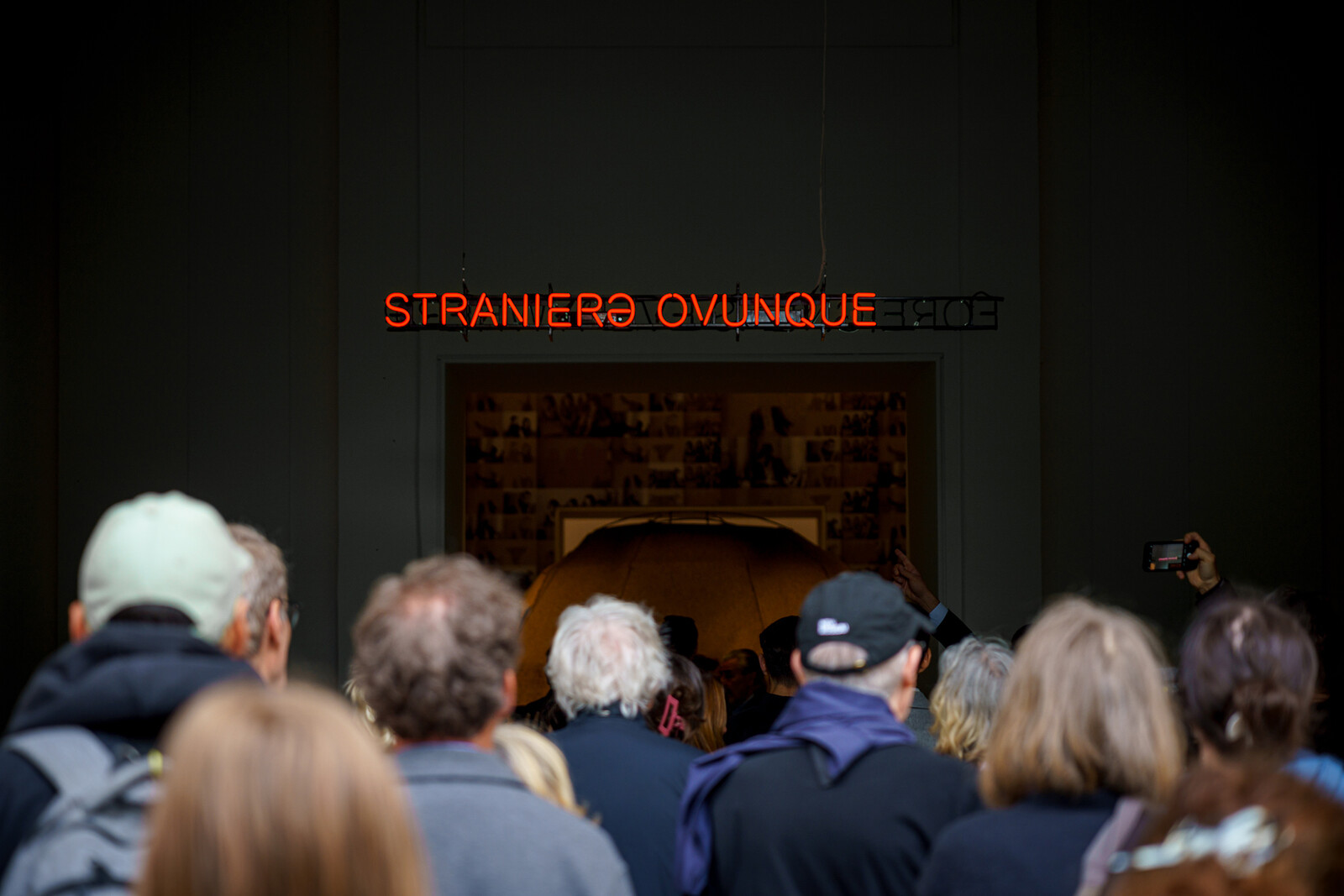 The title “Foreigners Everywhere,” derived from the neon text works by Claire Fontaine that hang over the entrances to both sites of the international exhibition at the Venice Biennale, holds out the promise of a productive confusion. In the Italian expression visible on the reverse of the English, stranieri ovunque, the phrase carries a more overt implication of strangeness with the same edge of hostility, so that the visitor might brace themselves for a series of encounters that are—like the experience of foreignness itself—bewildering, unsettling, and fundamentally unsafe.1