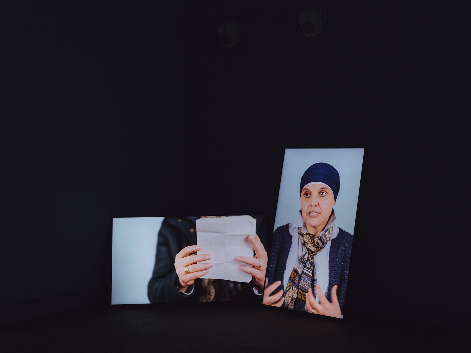 This emptying out of language into music also animates Gabrielle Goliath’s exceptional multi-screen video installation Personal Accounts (2024), in which the survivors of patriarchal violence relate their experience to camera against a monochrome blue background. Yet their words are withheld and their stories pared down to the moments at which their throats catch or they are forced to take a deep breath, producing a hubbub of inarticulate sounds overlaid by a single melody sung a cappella. It is an extraordinarily moving assertion of the liberatory potential inherent in the creative failure of our conventional forms of articulation, and for the value of artistic expression more generally.
