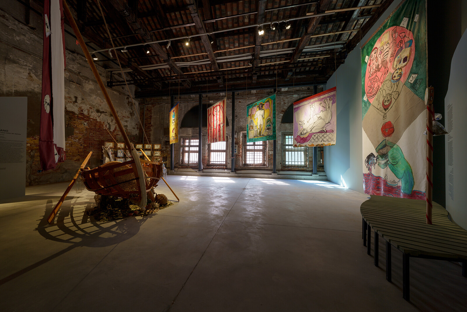 The means by which colonial conquest continues to shape contemporary realities were explored by Peruvian-Spanish artist Sandra Gamarra Heshiki’s powerful “Pinacoteca Migrante / Migrant Art Gallery” at the Spanish Pavilion. Gamarra Heshiki has divided the pavilion into six sections—titles included “Mestiza Masks” and “Cabinet of Enlightened Racism”—representing thematic critical investigations interweaving sociology, anthropology, politics, art history, and botany. She overlays quotes from artists and writers like Wassily Kandinsky and Paul B. Preciado, handcrafts, and masks onto objects ranging from racist missionary piggy banks to her own paintings. Gamarra Heshiki’s “museum” riffs on the exoticism of romantic landscape, casta painting, botanical studies, and colonial-era portraiture in its reflections on the legacy of colonialism’s extractivist attitudes to land and people. This is a distinctly South American critique of how the narrative tropes of colonial projects evolved into today’s capitalist and neoliberal ideas around value and labor.