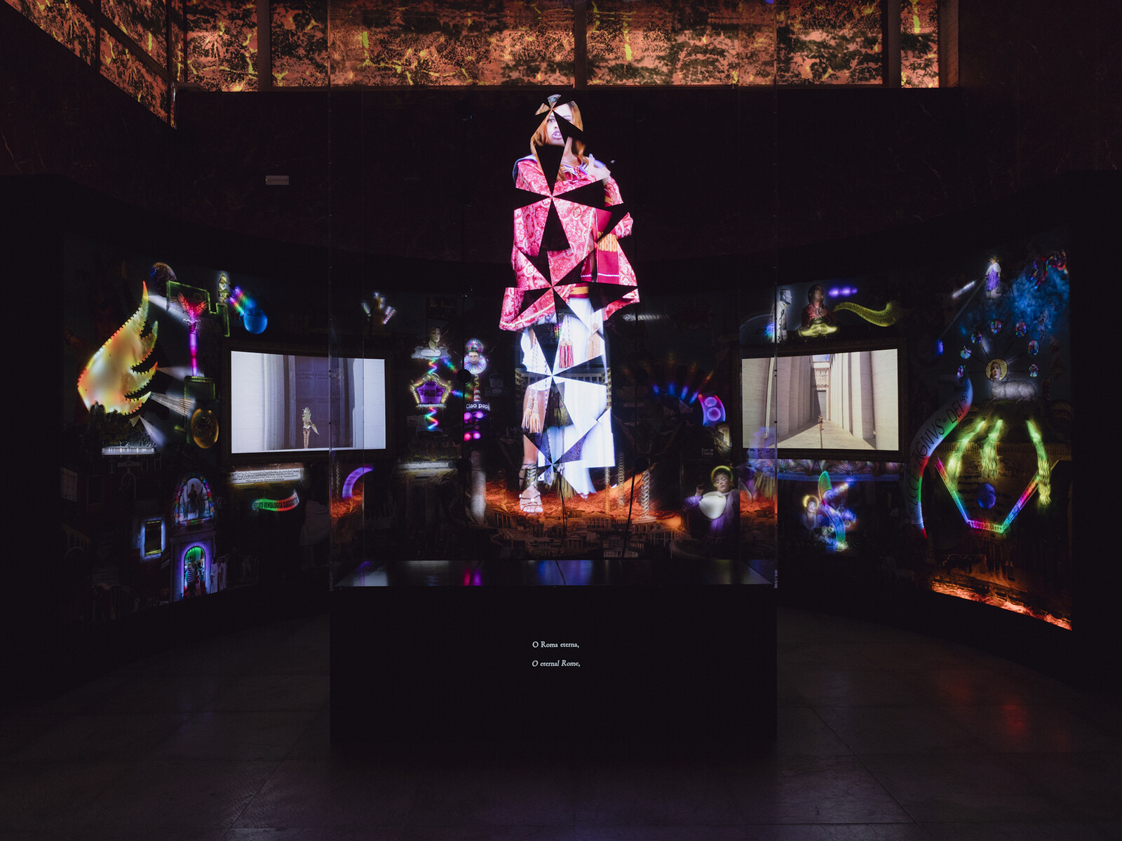 At the Swiss Pavilion, Guerreiro do Divino Amor presents campy video collages which play on the founding myth of ancient Rome and Mount Olympus, here recast in honor of the Swiss cultural agency as “Mount Helvetia,” sending up Switzerland as global shorthand for order and profit. With a slick planetarium video to introduce his pantheon and a hologram of an opera-singing, Brazilian trans wolf-mother goddess, the artist skewers the appropriation of mythological symbols by states and corporations. “Super Superior Civilizations” was one of the few pavilions to overtly reference the relationships between states and corporations, including allusions to banking and Nestlé’s actions in the developing world.