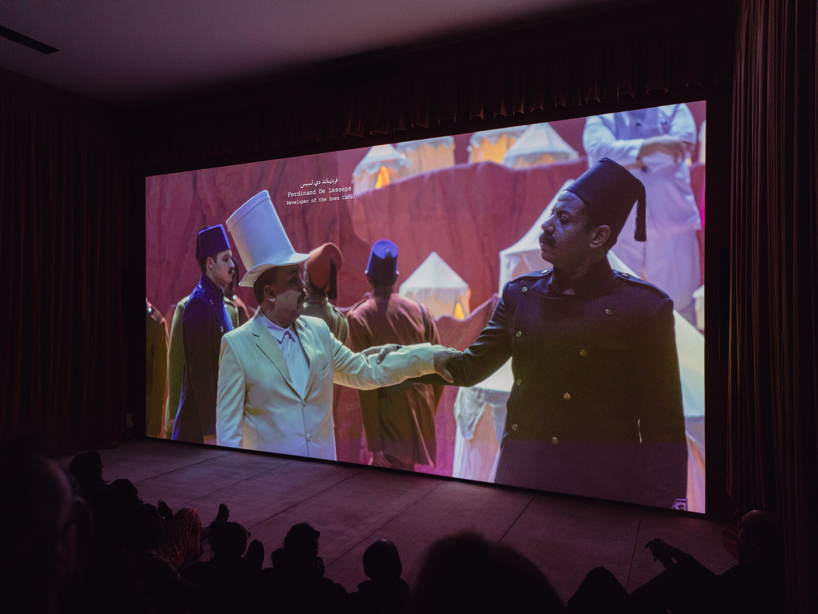 One throughline among the national pavilions was an emphasis on how the past is asserting itself on the present, a resonant theme as conflicts in Palestine and Ukraine, and tensions between the west and China, reinscribe power dynamics rooted in the nineteenth and twentieth centuries. At the Egyptian Pavilion, Wael Shawky presents a forty-nine-minute musical theater film Drama 1882 (2024) about the Urabi Revolution. Divided into eight acts, the film installation focuses on pivotal moments in the “scramble for Africa” that, by the end of World War I, had redrawn the map of Africa and the Middle East. Watching the piece, it is hard to not to make parallels between the repression and economic mismanagement under the Khedives which led to the country’s first major nationalist movement and the contemporary regime of President Sisi, with its freefalling economy and imprisonment of reporters and poets such as Alaa Abd El-Fattah.1