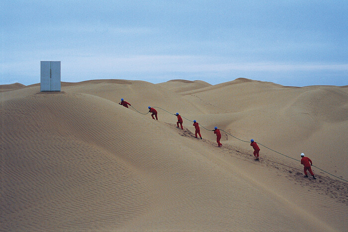 Mr.’s work is an example of how the curatorial team mapped the key themes of the Triennale—connectivity, isolation, coexistence, and diversity—onto social, cultural issues: Brexit, rising populism, the visibility of hate groups, or the efficacy of a networked society. Instead, many works seemed to dialog with the more-than-human world, especially the land itself and the things—new needs, hierarchies, boundaries, hopes and fears—that are generated in a landscape of risk. Alex Hartley presented his Nowhereisland project (2011–ongoing), inviting citizens to visit the unmapped Arctic island he “discovered” after an ancient glacier retreated. Propeller Group’s Tuan Andrew Nguyen made a melodramatic 42-minute film about the end of the world and Pulau Bidong, an island near Malaysia that refugees fled to during the Vietnam War (The Island, 2017). The mood soured, appropriately for an art festival in 2017, with works that located the human deeper inside nature. Mark Justiniani produced two installations that used mirrors to turn mine shafts—the holes that modernity crawled out of—into infinite regresses that ended in abysses (Tunnel, 2016). Oliver Chanarin created 42 drawings in a series titled Wave Directions in the Mediterranean Today (2017), suggesting horrible unions between the tilt of the planet and migrants’ desires. In the Red Brick Warehouse No. 1, artist group Chim↑Pom installed VR headsets made from mandarin boxes, construction helmets, and other detritus that allowed visitors to view 360-degree videos of the group show they initiated, entitled “Don’t Follow the Wind,” currently being held in the most irradiated zone of Fukushima. The exhibition will be opened to the public centuries hence, whenever—if ever—the zone is deemed safe to re-enter.