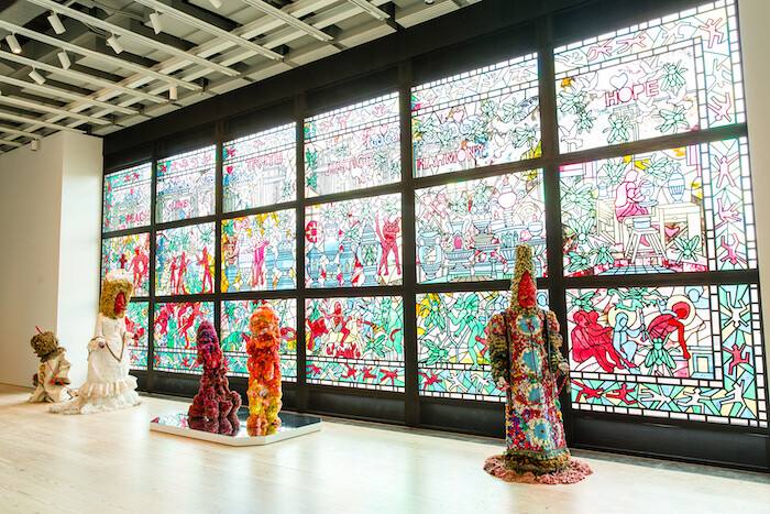 The stakes surrounding this Whitney Biennial are, to say the least, high. Indeed, it’s hard to imagine a biennial being under more pressure to signify, to mean, to produce meaning, to attempt to offer some special and tangible insight into our current moment. Instead, what the curators Christopher Lew and Mia Locks offer is art. This is not to say, of course, that the art presented here is divorced from our current harrowing reality, by any means, but that it does not forfeit its unique transformative power in the face of it. Lew’s and Locks’s love of and faith in art is refreshingly unequivocal. Nor is this to say that the biennial they have curated is devoid of the political, insofar as one of the capacities of the political is to seek to imagine alternatives to the status quo. In the alternative imagined here, an ideal diversity and gender balance reigns. Of the agreeably modest and negotiable number of 63 artists and artist collectives, this biennial possesses more artists of color than any other in its past. That diversity is not limited to ethnicity, gender, and geography (artists hail from as far afield here as Puerto Rico and Seattle, although Brooklyn dots many a biography) but also extends to media—even if a heavy emphasis is perceived to fall on painting.