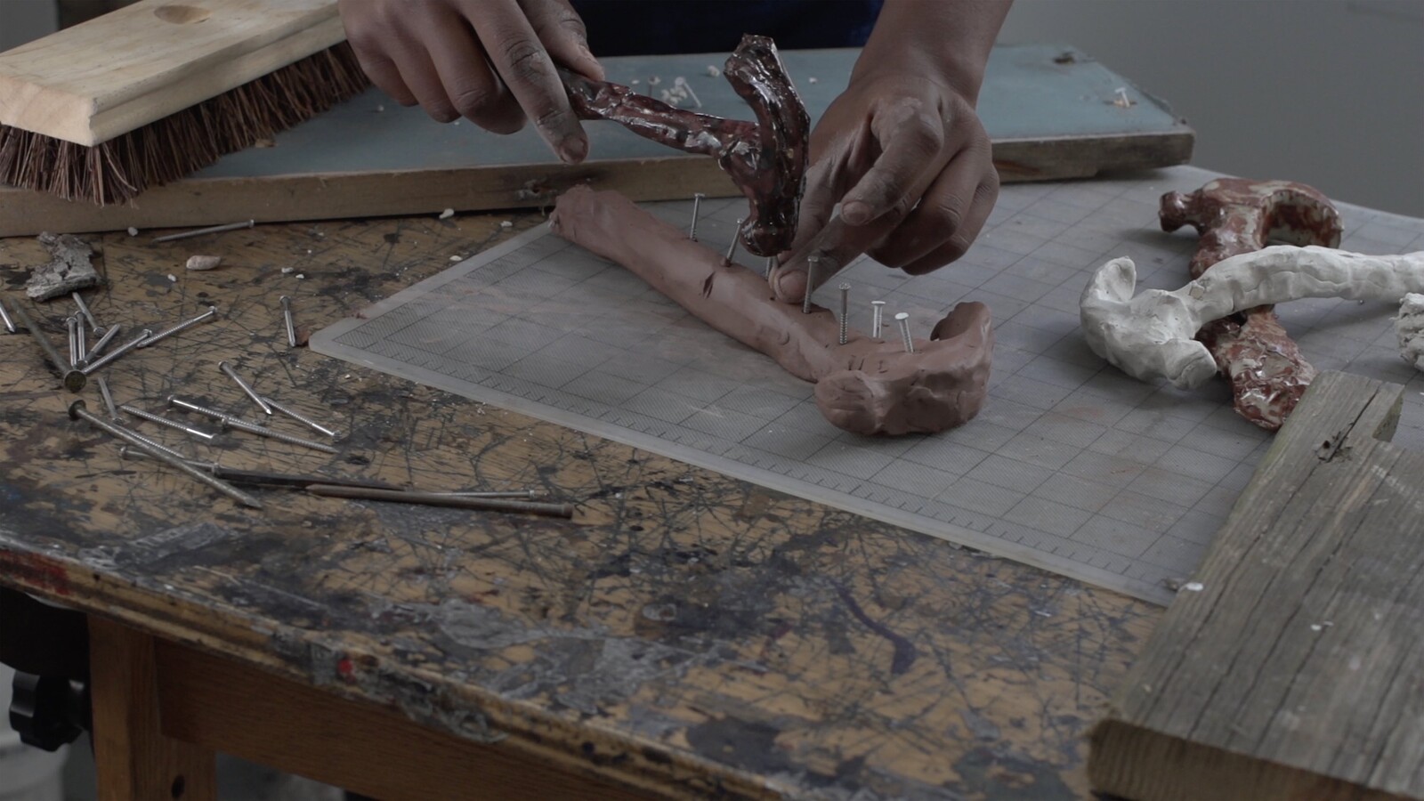 To those asking the question: the show doesn’t distinguish real talk from damage control. For Nosecone: EF (2019), a savvy, Michael Asher–like gesture, Madeline Hollander had two corner-facing segments of the Whitney’s bespoke metal flood barriers, usually tucked away, installed facing Gansevoort Street and the Hudson River. This kind of spectacular defensiveness, beautiful in its way, is as industrially formal as anything a Minimalist could dream up—yet also as callously pragmatic as the insurance any museum must buy. It is also a preview of the kind of thuggish engineering ready to be deployed by a rich island city on the front lines of global warming. Hollander’s piece is the brutalist counterpoint to more polished “institutional critique,” such as The Maid (2018), an HD video by Carissa Rodriguez that grants a cinematographic look at the care given to a sequence of fetal Constantin Brancusi and Sherrie Levine sculptures in various highlife locales. The piece “reveals” (in Levine’s or Louise Lawler’s mode) how art is valued, and suggests the unseen labor that makes value possible—while at the same time lushly affirming that it should ever be thus. So far as Rodriguez’s piece goes, its critique is as sentimental as its soundtrack: a cycle of three dramatic chords.