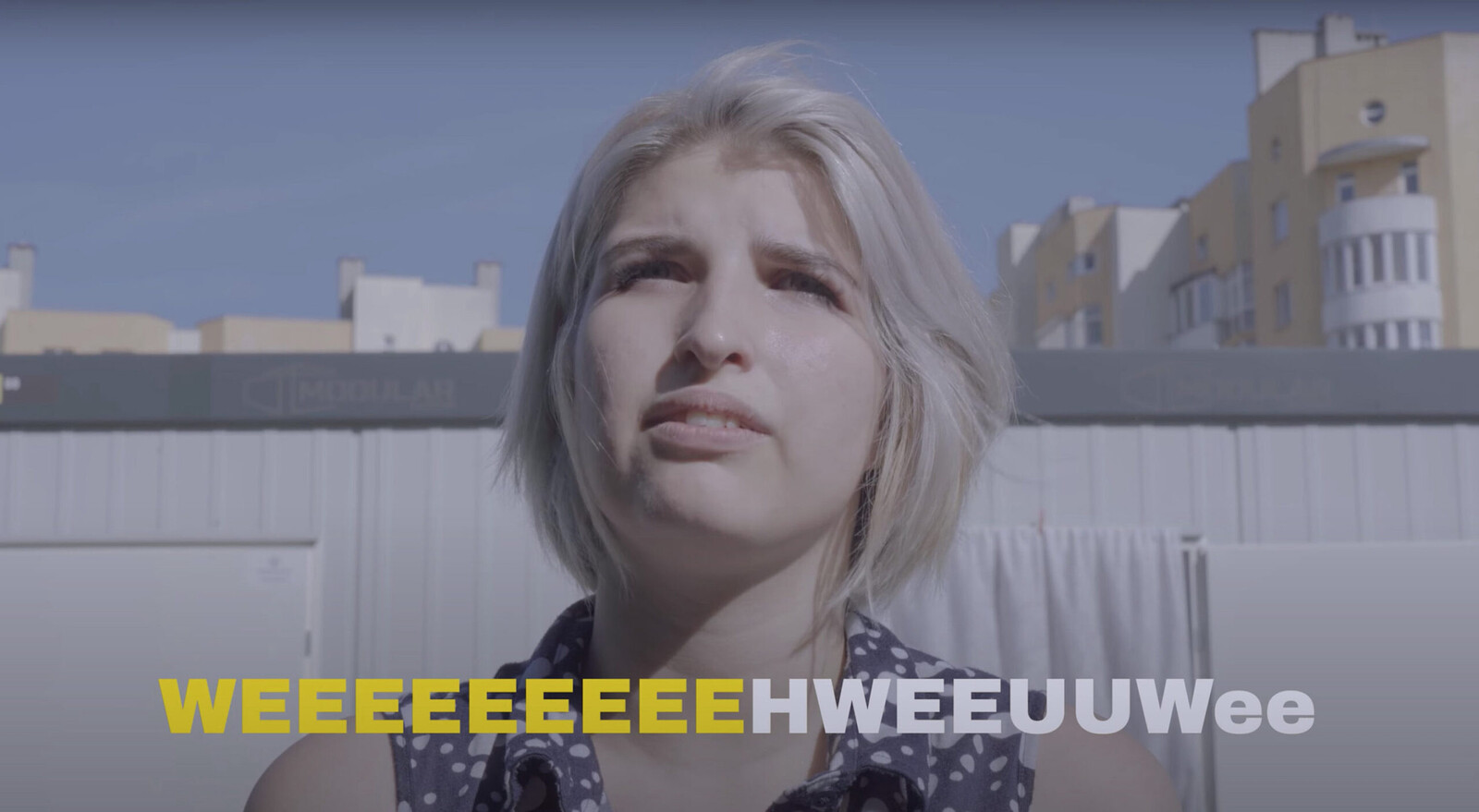The scene is completed by two works that are unsettling in different ways. As you approach Özgür Kar’s animated video Fallen Tree (2023/24), the unnerving sound of buzzing flies indicates that something is rotting inside a dead tree displayed on standing screens at life size. The other is Open Group’s Repeat After Me (2022), in which Ukrainian war refugees imitate the sounds of weapons.1 As alarm bells sound at irregular intervals from the galleries upstairs, the reality of an ongoing war fulfils the sense of continuous crisis mode. The atmosphere is a cross between the murky Tatooine markets of Star Wars (1977), the Orwellian grotesqueries of Terry Gilliam’s Brazil (1985), and an amateur documentary video shot in a warzone.