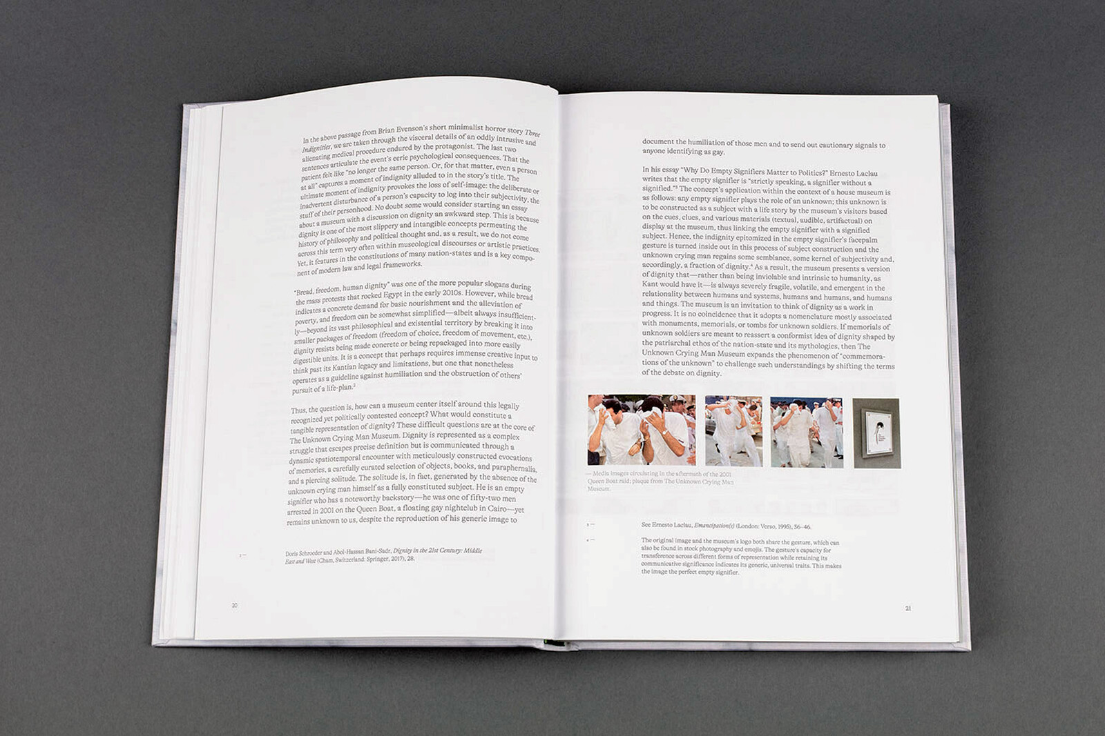 MK: My co-editor Sara El Adl and I imagined the texts to be performative. We wanted the contributors to imagine a moment, 30 or 40 years from now, when someone might decide to commemorate what happened in 2001 and make a museum dedicated to the person in this now-stock image. It gave me the chance to work with people I admired beyond the bubble of contemporary art, in the fields of journalism, academia, human rights, and activism.