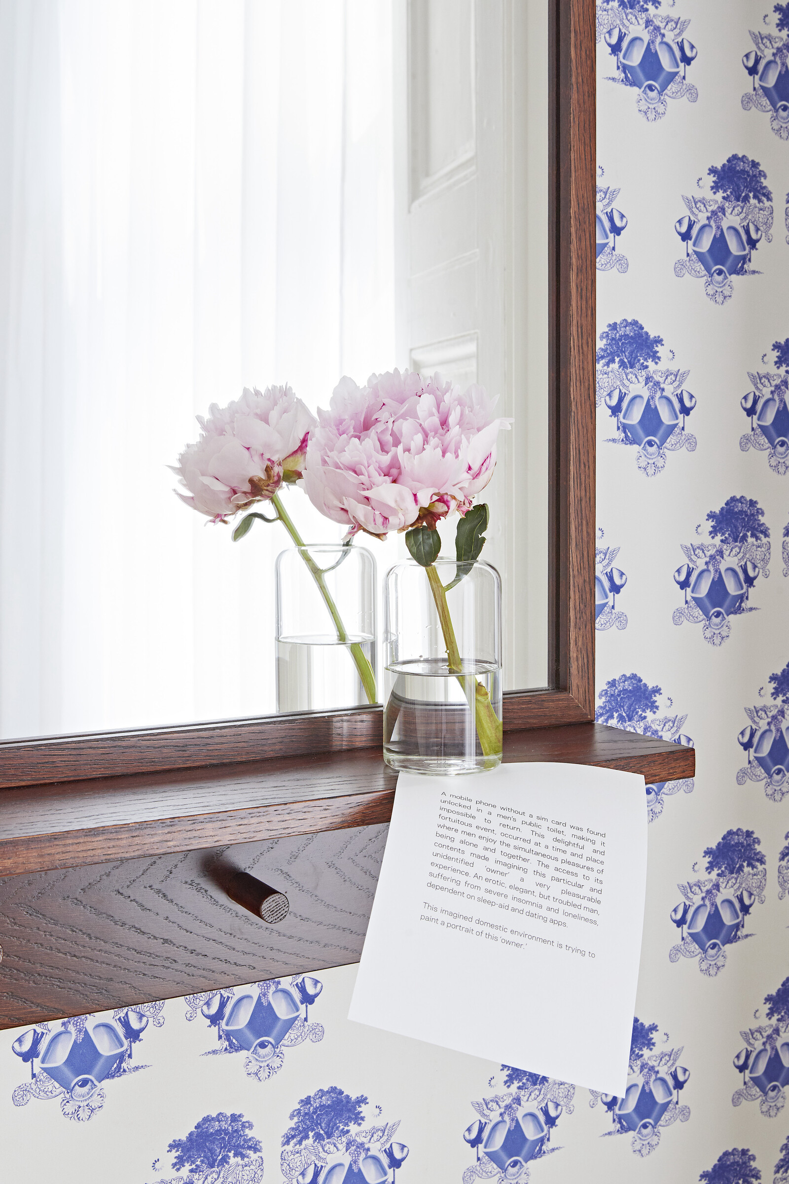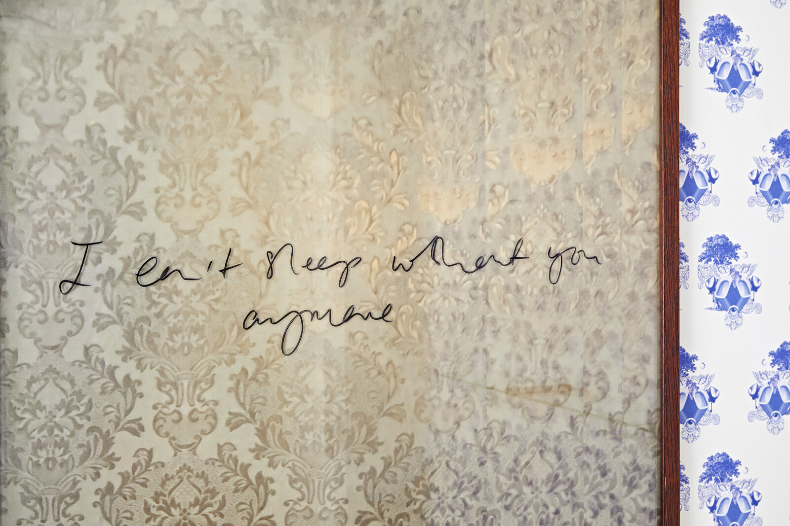 The exhibition stages a domestic environment that reflects the personality of the phone’s owner, someone who is very erotic, elegant, but—as the sleep-aid apps found on his phone suggest—troubled. I imagined that the phone was found in a public bathroom, a space where men enjoy the pleasures of being alone and together, a place that is simultaneously public and private. It is a liminal space, with an unspoken code.