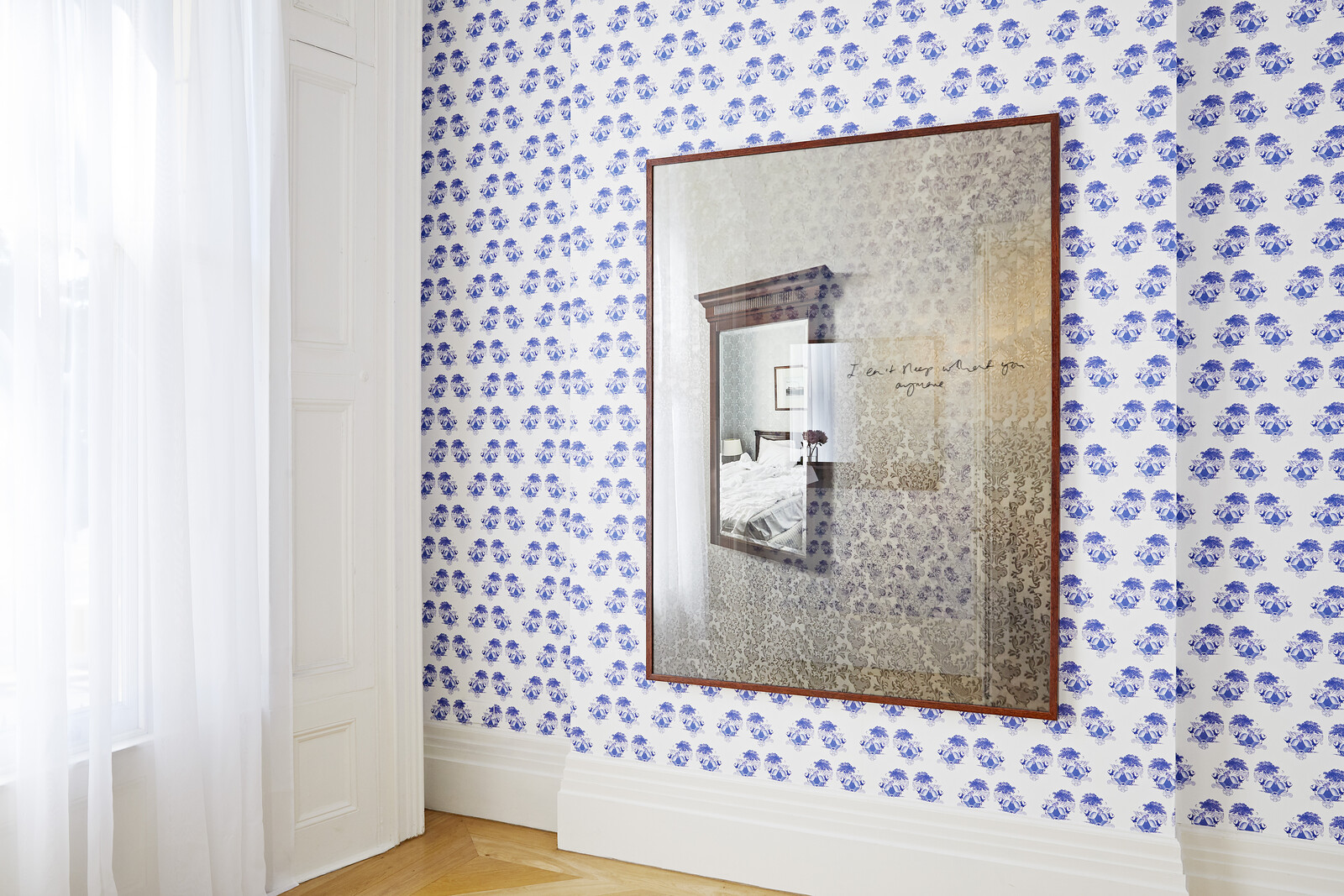 Mahmoud Khaled has in recent years taken the house museum—a space dedicated to the legacy of the person (real or invented) who lived there—as his medium. Beginning with “Proposal for a House Museum of an Unknown Crying Man” at the 15th Istanbul Biennial in 2017,1 Khaled has used these imagined sets to explore the violence and power of memorialization. In his first UK solo exhibition at The Mosaic Rooms, “Fantasies on a Found Phone, Dedicated to the Man Who Lost it,” the Berlin-based, Egyptian artist transforms the gallery space into a domestic setting. This immersive environment—featuring murals, sculpture, photography, a sound piece, and an artist’s book—imagines the life of the anonymous owner of a misplaced phone in order to commemorate it. This project builds on Khaled’s continued interest in museums and archives as apparatuses of history-telling that can be reappropriated to document and celebrate marginalized queer lives. His work examines the tension between the public and the private, as well as the relationships between identity, anonymity, and intimacy.