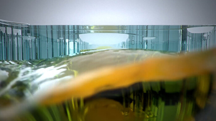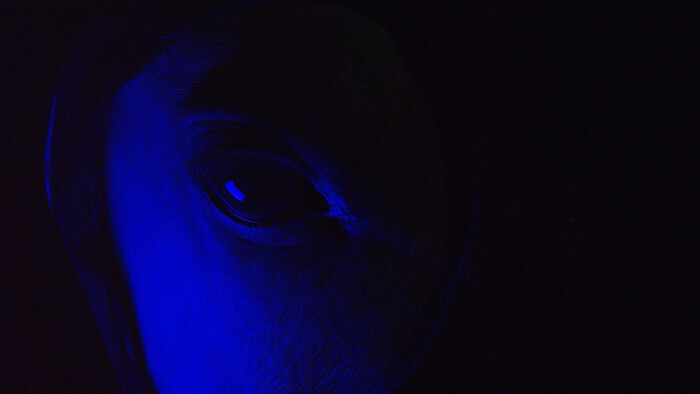 Projected onto a large screen in a darkened room on the first floor of the art center is Reproductive Exile (2018), a looping video by Lucy Beech that charts the fictional story of a woman who wishes to conceive by engaging in assisted reproduction in a medical facility in the Czech Republic. Striking footage of women soaking in baths of yellowish fluid, injecting fertility drugs, and touring dilapidated medical facilities is interspersed with images of viruses, MRI scans, and cellular imagery, many of which echo the organic shapes in Pailthorpe and Mednikoff’s works. Awash with scenes of liquidation—swimming, bathing, running taps—Reproductive Exile crescendos with a cascading wave of horse urine that overwhelms the screen. Female bodies, both human and animal, are symbolically tangled together. Hormones from a mare’s urine are used to thicken a human uterus. The womb is configured both as a symbolic psychic interior and biopolitical territory. While Pailthorpe and Mednikoff’s Psychorealism favored the muddy territories of the past, Beech’s work roots itself in the concrete conditions of the present to speculate on the ethics of possible futures. Surrogacy and subconscious drives are replaced by technology: the female reproductive system is controlled in the film by Eve, a computerized box that regulates unconscious, endocrinological processes. This notion of exile is figured as a palpable bodily and political expulsion: bodies are physically ostracized from their corporeal reality, stripped of their agency. Like the ur-woman the Eve box references—the first mother—these bodies are non-specific ciphers, understood only in relation to the booming fertility-industrial complex.
