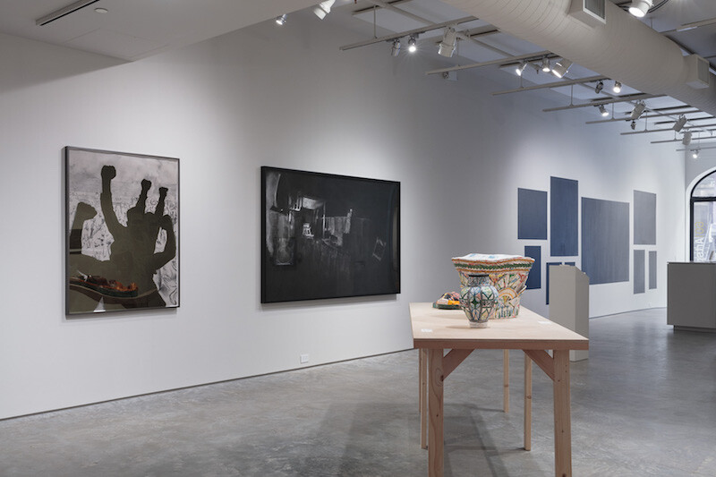 In his press release for “A Void,” a group exhibition at 601Artspace, curator and artist Paul Ramírez Jonas provides an epigraphic clue to the relationship he sees between various forms of displacement that result in a void: “When books burn, people burn.” The phrase, according to the press release, is a quote by Iraqi-American artist Michael Rakowitz, one of eight artists in the show.1.] Their works render the violent displacement and death of people: Palestinians, Syrians, African Americans, Bosnian Muslims, Colombians, French Jews during the Holocaust, and female victims of domestic abuse in Ecuador.
