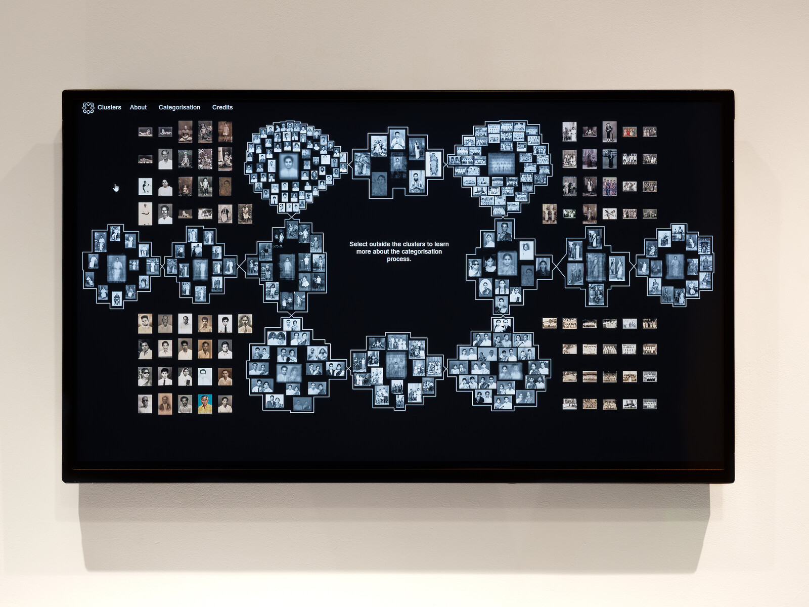 Living within the algorithmic structures of the internet, we may begin to identify with the subjects of the photographs. We see ourselves becoming datapoints: tracked, categorized, manipulated. By simultaneously embodying these two approaches to the archive—as a source of knowledge and an oppressive technology—“A·kin” articulates the trade-off which defines virtual life: you can have access to seemingly unlimited information and connection if you accept equally extensive surveillance and control.