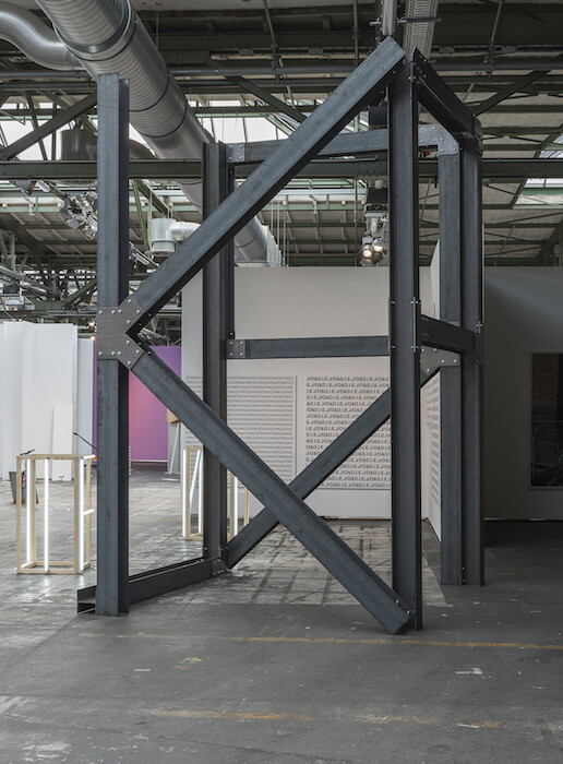 They traffic in both modesty and maximalism, as do the three “Four-letter word sculptures” (all 2015) also on view at Neu, especially Untitled (Four-letter word sculpture KARL), an uncharacteristically monumental sculpture whose steel beams, at almost five meters tall, seem, at first, part of the architecture of the fair’s renovated industrial setting. A closer look reveals that each side of the rectangular sculpture is, rather, a letter articulated in steel: K, A, R, L. It’s just the artist’s own name, made enormous. Because what else are we doing, with contemporary art, than finding ever more precise ways of representing ourselves—our experiences, our politics, our ideas, our criticality? Holmqvist shortcuts the process with a gesture that is, appropriately, as vapid as the sudden realization that art is sold for money. It works exceptionally well.