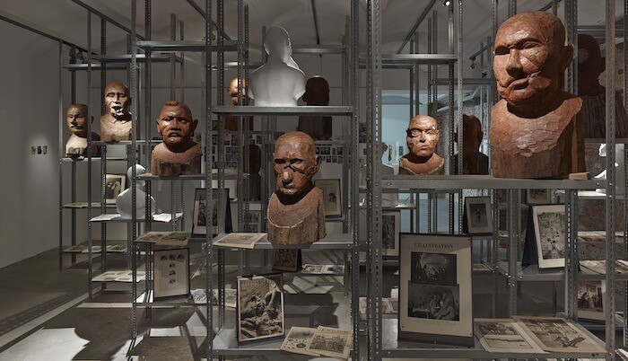 A number of the panel discussions at the fair revolved around the new museums, including the starry talk by Guggenheim director Richard Armstrong, outgoing British Museum director Neil MacGregor, and Agence France-Muséums chair Manuel Rabaté (standing in for Louvre president Jean-Luc Martinez, who stayed in Paris because of the events there).1 The museums—the project of a new state that wants to make its cultural mark—have been the subject of a fair amount of controversy. The Louvre Abu Dhabi is now nearly finished, on a site just beyond the art fair, with construction 24 hours a day in order that it will hit its oft-receding target of opening next year. Ground has not been broken on the Guggenheim but the museum has been collecting assiduously, and at the art fair it announced new acquisitions ranging from a 1973 Warhol Mao to a 1989 Alighiero e Boetti Mappa, and from Rasheed Araeen’s Chakras (1969–70/87) to Akram Zaatari’s Studio Scheherazade (2006) and Kader Attia’s Act 2: Politics. The Repair’s Cosmogony (Die Weltentstehungslehre der Reparatur) from 2013: work that tells of the meetings of different cultures, as well as focusing on work from the Middle East, Turkey, and North Africa. The Sheikh Zayed Museum is next to be built: part of a project that not only includes the museums but also a vast reterritorialization of Saadiyat Island’s desert land, which will become a complex of villas, shopping malls, museums, and open, asphalted areas.