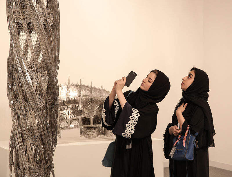 The situation culturally is also more diverse than one might imagine, and there is a sense of its being a crucial moment for the contemporary art scene. There is a host of new developments as well as—perhaps more tellingly—curiosity about the past, as often happens at a moment of consolidation. The UAE pavilion at Venice, curated by Sharjah Art Foundation director Sheikha Hoor Al Qasimi, looked at Emirati artists from the 1980s to the present; the current show “1971,” at the Farjam Foundation in Dubai, starts its narrative from 1971, the year the United Arab Emirates was founded; and the Sharjah-based Barjeel Foundation presents a year-long series of four displays from its collection at the Whitechapel in London. “Emirati Expressions,” a biennial exhibition that runs alongside Abu Dhabi Art (literally alongside it, in a gallery space in the same building), focuses this year on the social clubs of the UAE as proto-community-led art institutions. There is also the sense of a local scene forming as more artists return after studying to live and work in the UAE, rather than staying abroad.