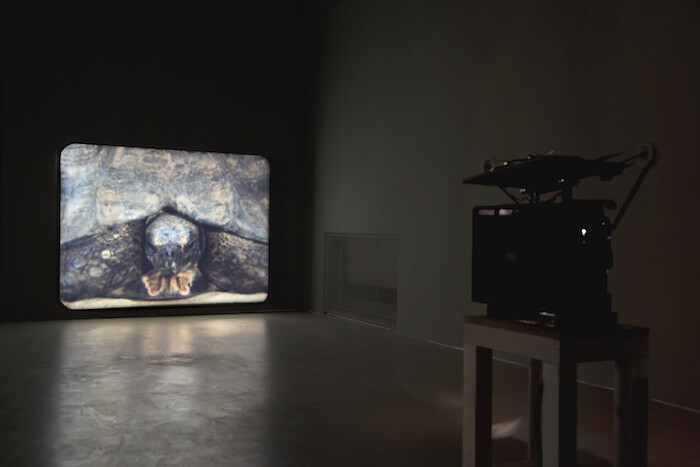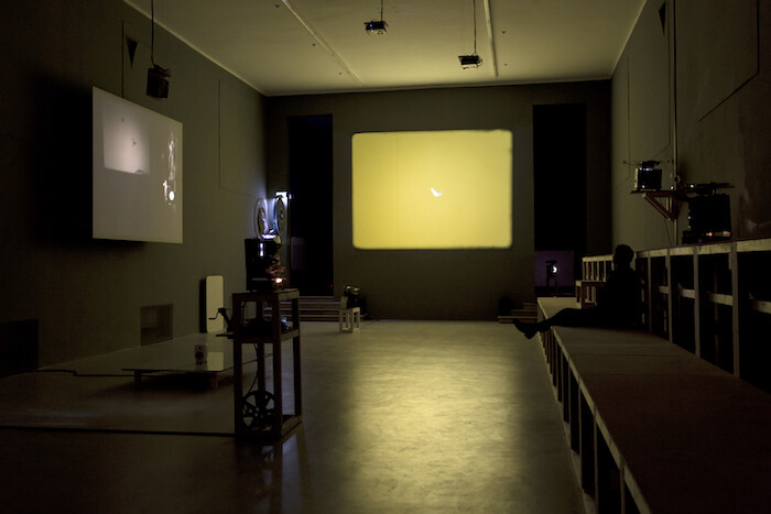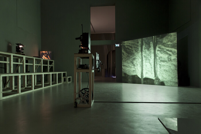 Described by its creators as an “immersive moving-image experiment,” “Lua Cão” is tailored to the elegant Kunstverein München, which shares curating credit with Natxo Checa, the show’s original instigator. Twenty-one artworks are distributed among five rooms split over two floors of the exhibition space. All except one require a projector. Yet not every part of this panoptic cinema is revealed at once: rather, it unfolds in strategic on-and-off combinations over the course of an evening, guided by a skillful, ever-present projectionist.
