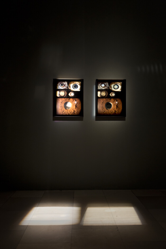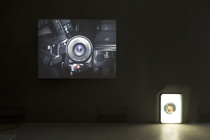 Whereas Gusmão and Paiva symbolically gesture toward decolonization ethics, and attempt to thwart the camera’s asymmetrical power dynamics by relinquishing the apparatus itself, Estrela satirizes the lens. I to Infinity (2006) holds at its center the very thing: a video camera’s eye. Its mechanisms are caught in a torus revolution, forcing it into a perpetual zoom. It snags whoever crosses into its sightline, psychically boring into—and colonizing—one’s very being. The piece is chilling, and recalls Harun Farocki’s ironic quip that “gazes don’t destroy anything.”2 It is merely the surveillance ideologies programmed into them that do.