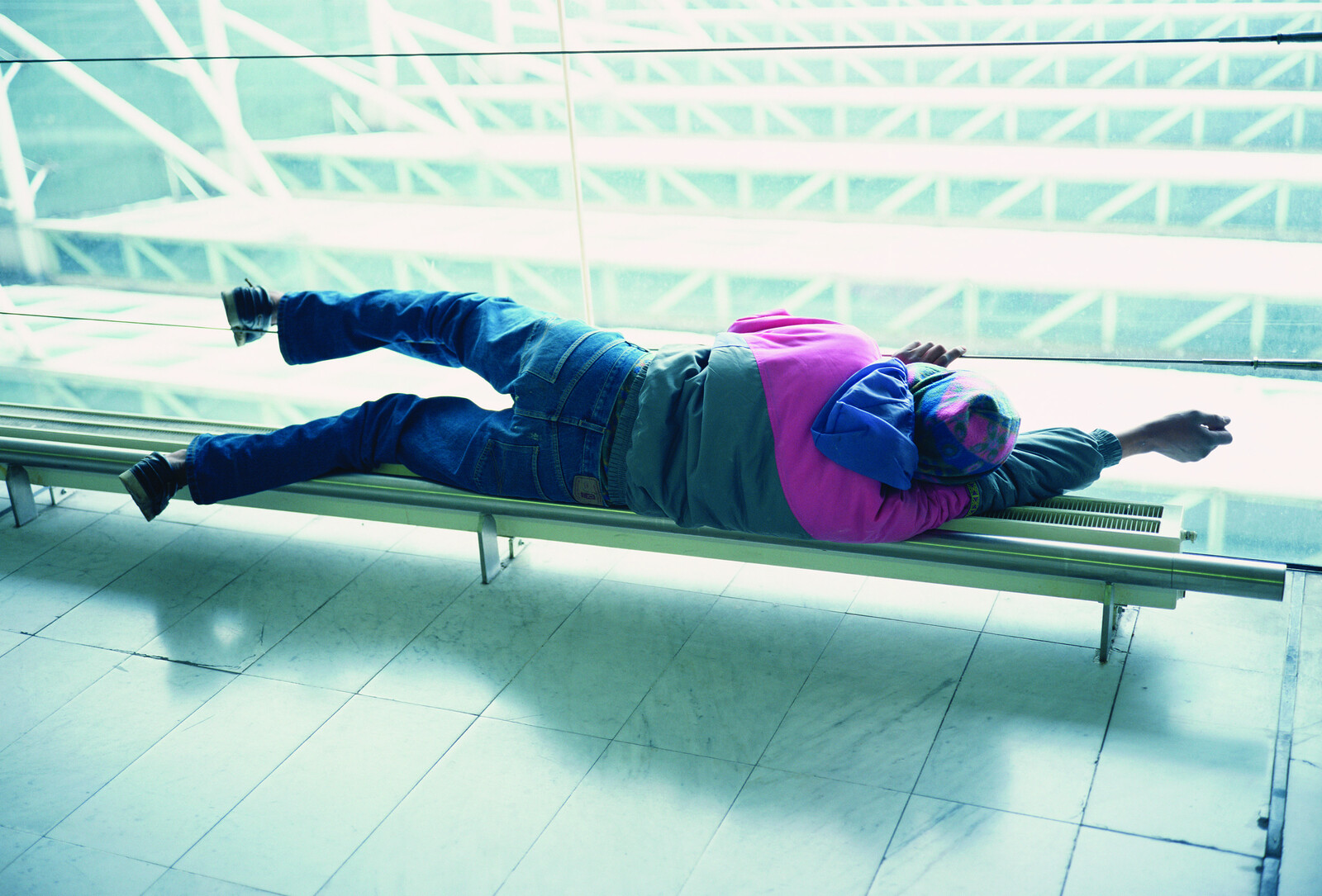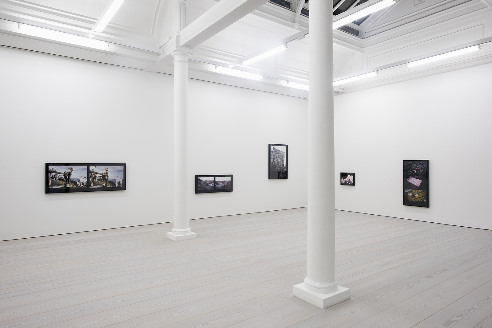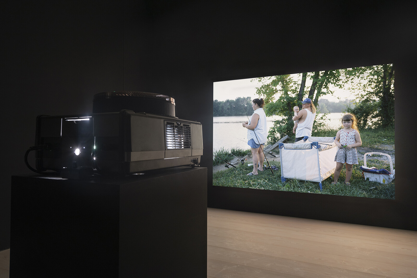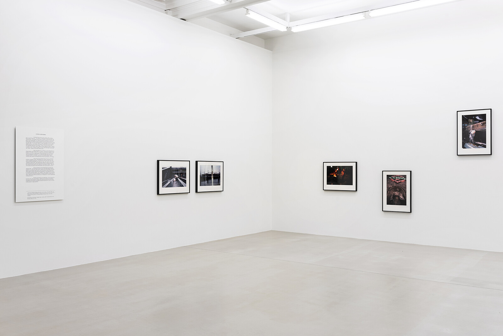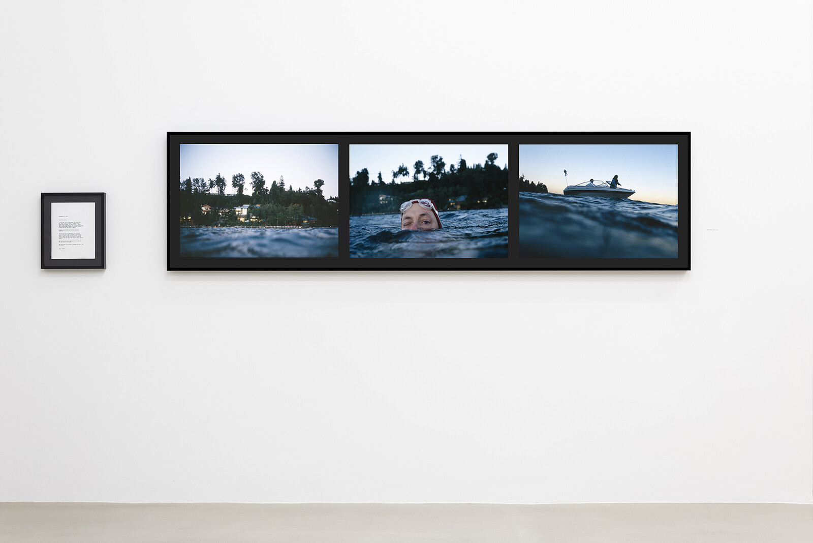 Marie Muracciole’s curatorial work deftly plays on photography’s dialogic character by pairing different media. Lottery of the Sea’s oil-spill episode is echoed in the photo series “Black Tide/Marea negra” (2002–03), and again draws toward literary fiction in the accompanying text, Fragments for an Opera, which parodies a libretto. Adding another layer of dialog is a group of works that resonates strongly today. Prayer for the Americans 1 (1999/2004), a slideshow of ominously pacific images depicting Mark Twain’s hometown of Hannibal, Missouri, searches out the roots of American brutality and bellicosity on the world stage. Perched atop the gallery’s stairwell, the photograph Europa (2011) depicts a sleeping figure precariously balanced on a narrow heater at Charles de Gaulle Airport in Paris. This isolated image is initially opaque. Yet attentive viewing renders it legible as an explicit rebuke to the future consequences of Brexiteer nationalism. The photo triptych Dear Bill Gates (1999), meanwhile, announces Sekula’s prescient skepticism of the utopic promises of digital connectivity.