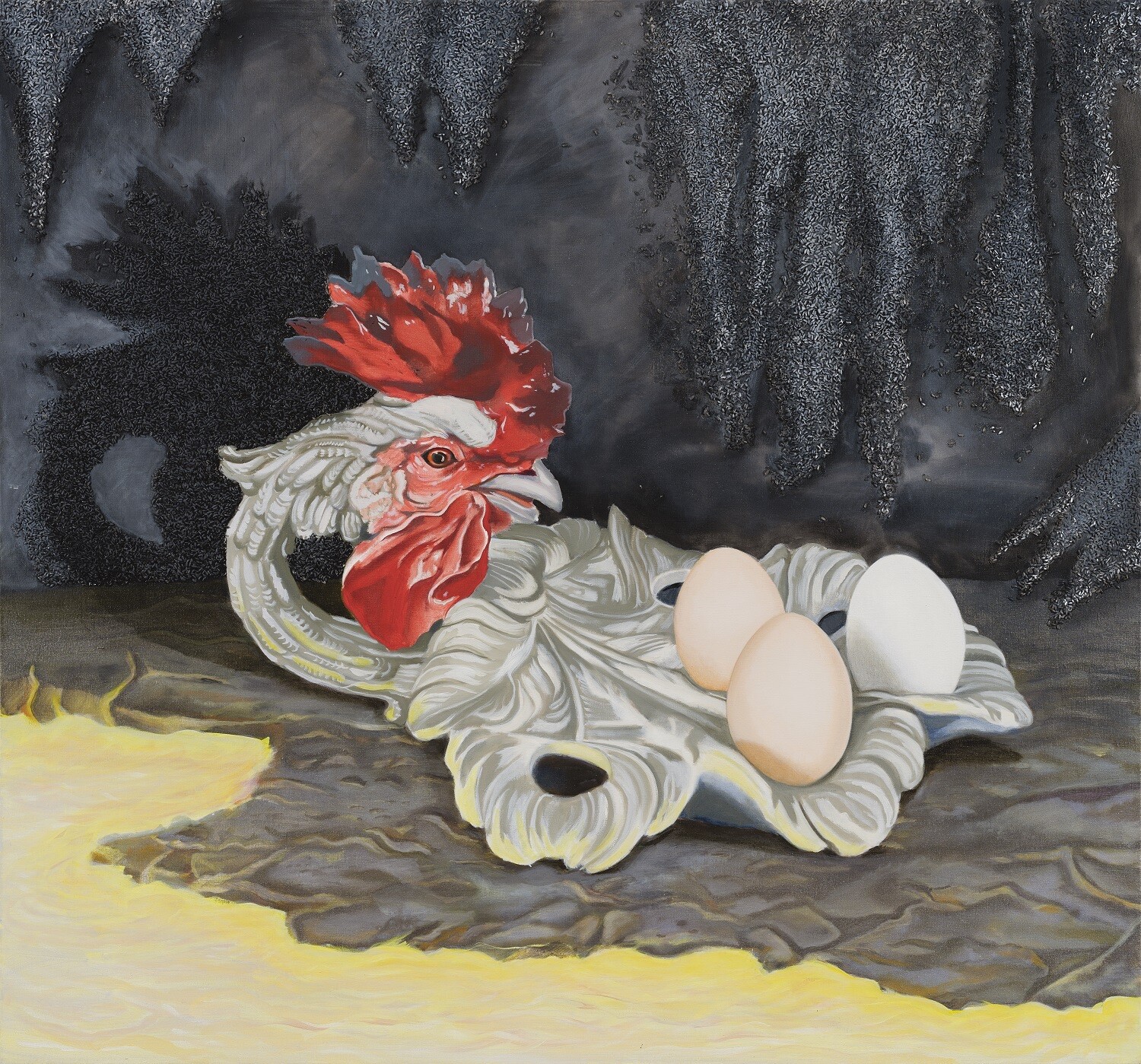Because they always depict roosters, the artist has referred to this series of works as “cock paintings”