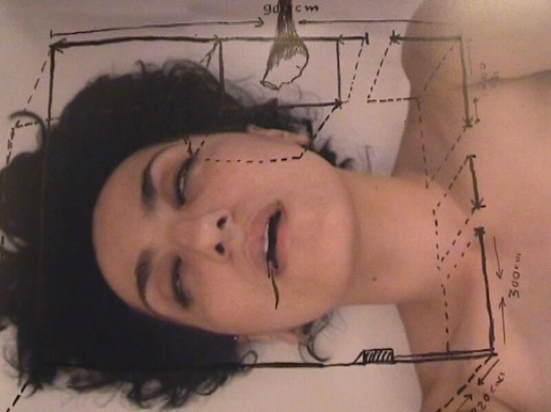 The show is presented non-chronologically, opening with one of Kenawy’s late pieces, the one most often shown abroad: the controversial Silence of the Sheep (2009), her first (and only) performance in public space. Silence of the Sheep saw Kenawy lead a group of a dozen people (artists and friends, but also day laborers hired for the job) as they crawled through the streets of downtown Cairo. The performance ended in a fight with bystanders and the arrest of Kenawy and the performers. The following year, she used the video documentation as part of an immersive installation that won the Grand Prize at the 12th Cairo Biennale. Now anachronistically cast as an augur of Egypt’s 2011 revolution, only the documentation itself is shown here, as if the whole work were the video. This posthumous presentation of Silence of the Sheep encapsulates the challenges of presenting Kenawy’s work without her, to which this retrospective is not immune—how to account for the mutable nature of these projects, which Kenawy transformed depending on context; how to adequately restage something that had been so charged by the artist’s own body and personality?