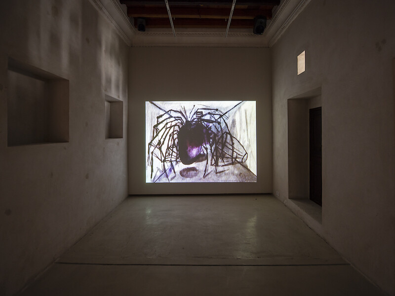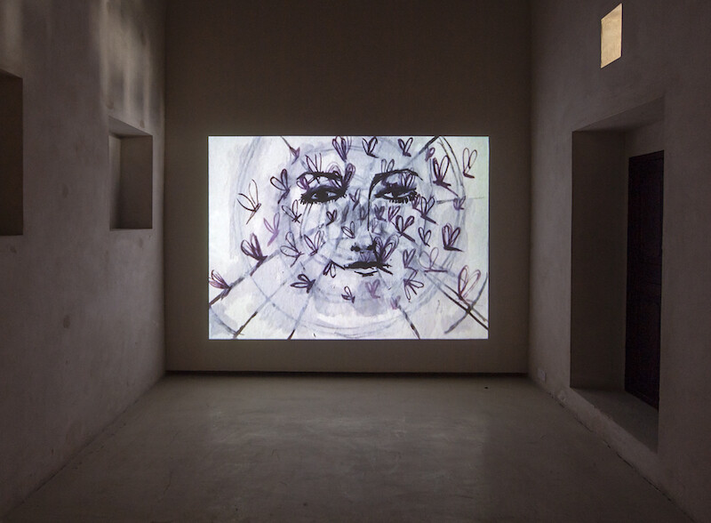 By the time I knew her in 2009, before her death in 2012, at only 37, Amal Kenawy seemed to gleam with elite art world prestige, the kind that one assumes would protect against forgetting. The Egyptian artist’s darkly eerie, fungible, genre-defying productions were shown in major exhibitions and biennials around the world, and now, a retrospective at the Sharjah Art Foundation (SAF), “Frozen Memory,” seems to attest to the continued endurance of her legacy. Co-curated by SAF’s director Hoor Al Qasimi and Suha Shoman, the executor of the artist’s estate, the exhibition brings together Kenawy’s major works: 11 videos, several paintings and drawings, together with volumes of archival material, from notebooks to sketches to funding proposals, spread out among the many chambers that wrap around the two-story courtyard of the Bait Al Serkal.