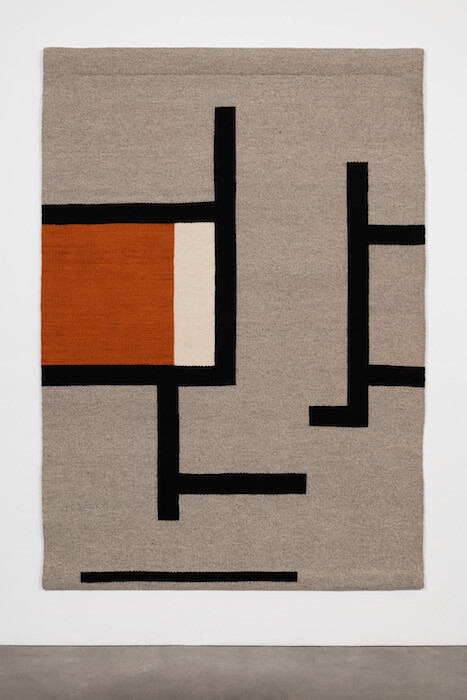 Each Planar Configuration is sutured with a long vertical plane that would seem to limit the ability to reconfigure it. This is a key feature to much of Zittel’s practice: finding freedom within constraints, ones decided upon by the artist. Part of this freedom would seem to demand an element of depersonalization, almost a ridding of personality. Zittel’s abstract patternings and modes of assembly are certainly unique, yet there’s also an element of distance and formality to them, despite so frequently engaging with the intimacy of domestic spaces. Even the two Parallel Planar Panels hanging textiles whose stitched designs mimic the geometries of the modular units are intended to erect limits and divide rooms as opposed to adding interior warmth or decoration.