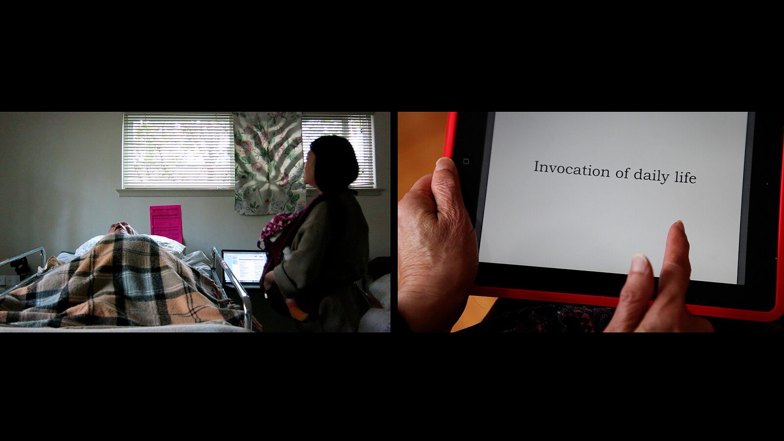 Curated by Dr. Jenny Lin, “Another Beautiful Country: Moving Images by Chinese American Artists” hinges on another transcultural exchange. Drawing connections between gūanxi and French-Martinican philosopher of opacity Édouard Glissant’s notion of a “poetics of relation,” the exhibition posits relationality over identity as an alternate cornerstone of contemporary Chinese Americanness.1 Referenced in an introductory essay in the exhibition catalogue written by Dr. Lin, Glissant’s emphasis on diasporic relation is espoused throughout the show—which includes areas for repose and relation amongst exhibition-goers—and enacted through real and speculative social encounters between family, friends, and strangers staged within the works themselves. Drawing its title from the Chinese word for America, 美國/měiguó, which translates literally to “beautiful country,” along with the popular shorthand for “American-born Chinese” (ABC), it offers a collective reflection on the slippery mutability of Chinese American identity and the relations that come to define it.