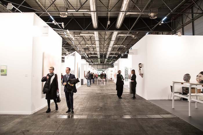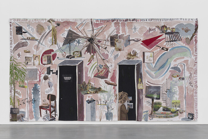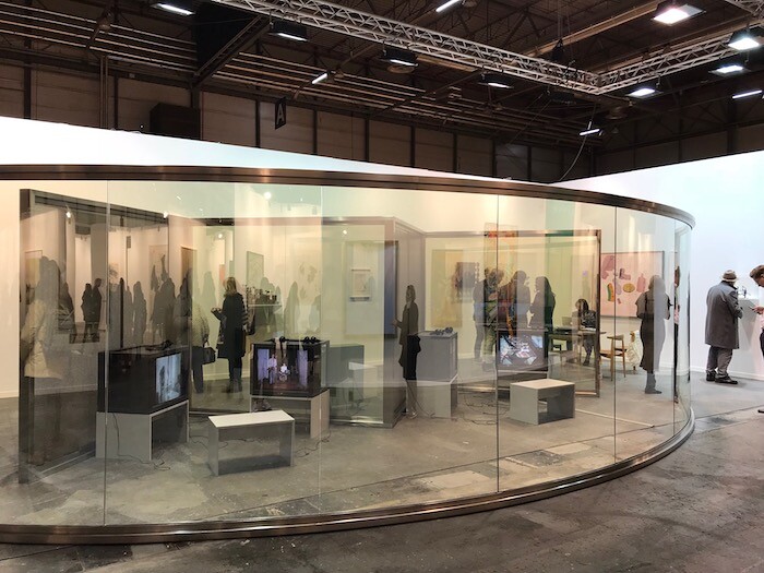 Elsewhere, Berlin’s Barbara Thumm staged a fantastic two-person presentation, featuring works by Teresa Burga and the brilliant Georgian artist Anna K.E., who showed a large selection of sculptures, drawings, and performative photographs. Another successful pairing was that of Hélène Delprat and Laure Prouvost at Carlier Gebauer, Berlin, as part of the Dialogues section, curated by María de Corral, Catalina Lozano, and Lorena Martínez de Corral. At the booth, the paintings by Delprat and the tapestry installation and video-sculptures by Prouvost fused into an oneiric continuum in which strange characters, hovering between the real and the fictional, weaved narratives to draw the viewer in.