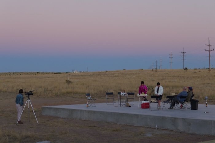 Nearby at Berlin’s Chertlüdde, Alvaro Urbano’s sculptures, which borrow architectural elements from Archizoom’s Teatro Impossibile (Impossible Theatre, 1960) stood on the floor awaiting their activation on Friday morning, when they were worn by the artist and paraded across the fair to kick-start the Future talks program, with guests including Trevor Paglen, Nina Power, and Santiago Alba Rico.
